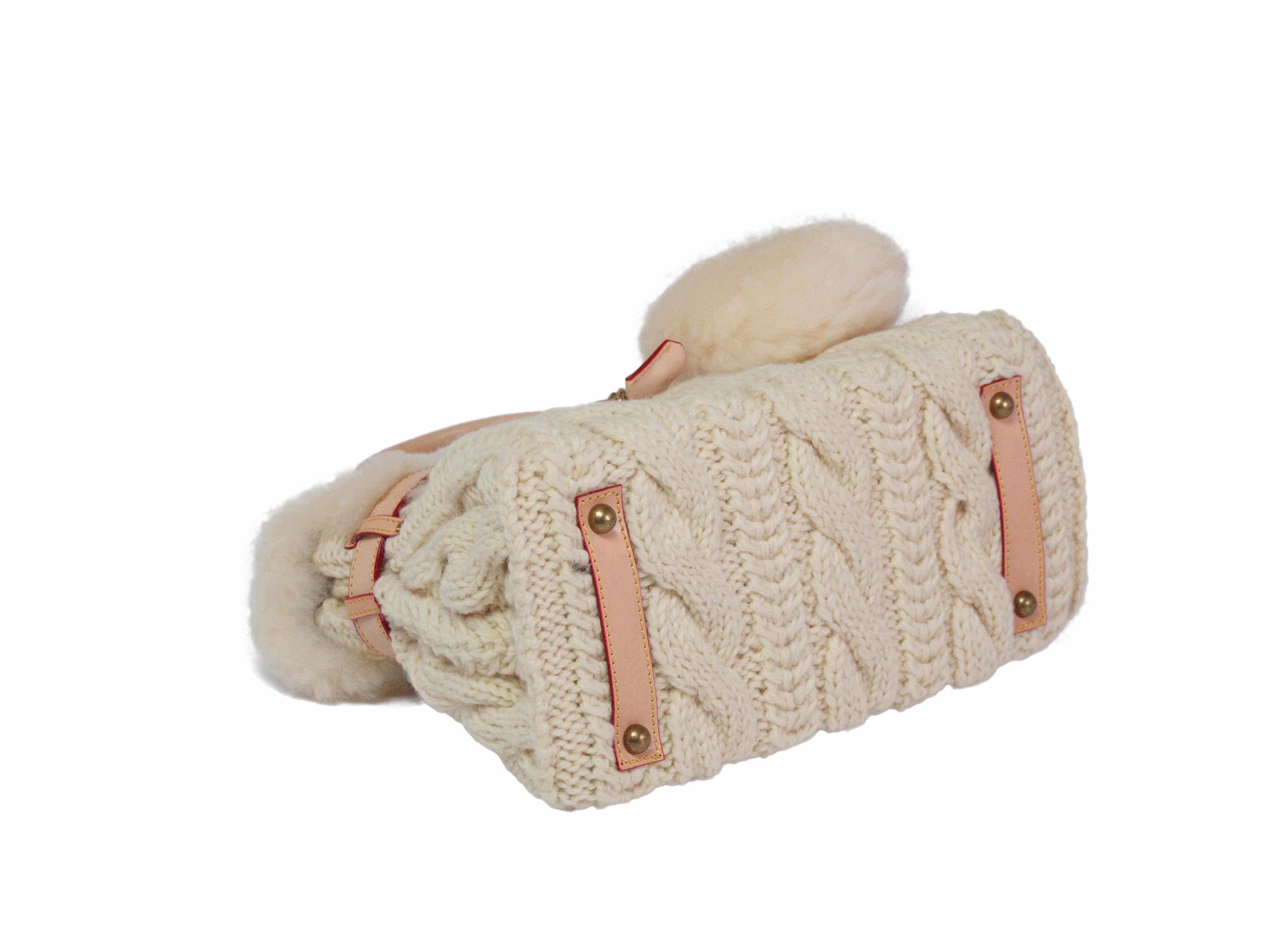 オーストラリア、ヴィクトリア州の上質なムートン(メリノラムファー)と日本の職人が編み上げたウールニットの組み合わせが特徴。スマホや長財布、500mlペットボトルも収納出来ます。小物を収納できるムートンチャームが付いています。