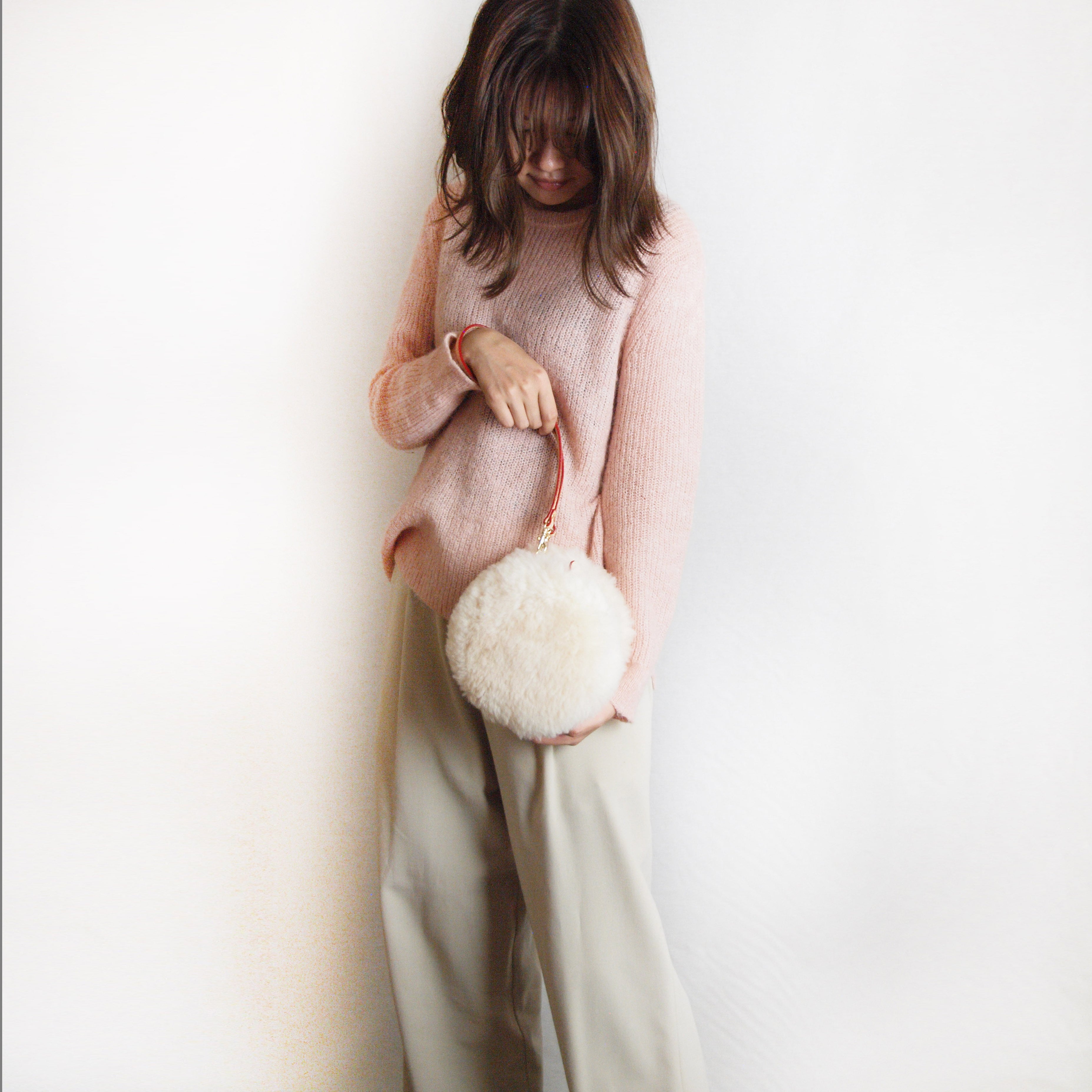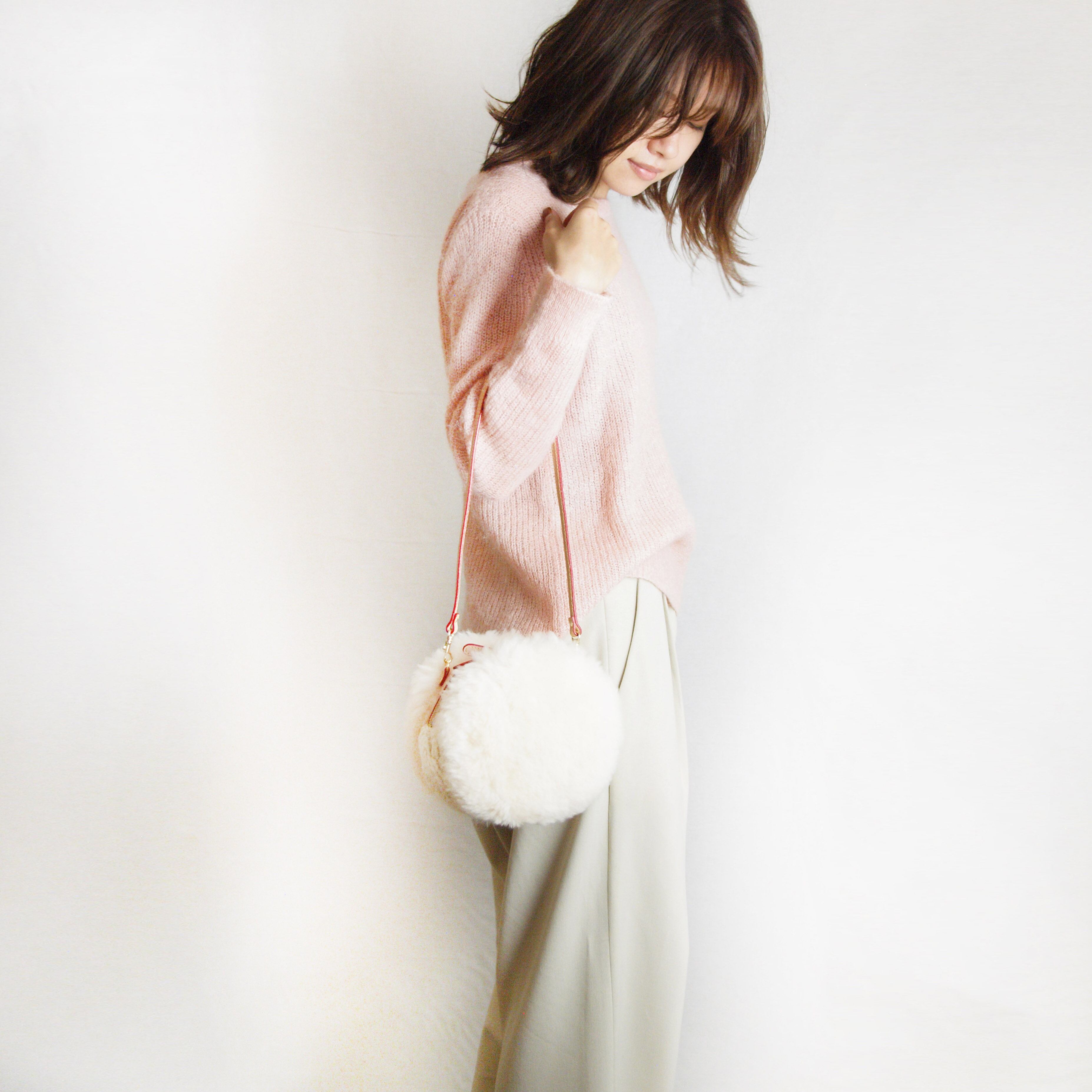 本物の“マカロン”さながらの愛らしいラウンドシルエットをムートンで表現したバック。