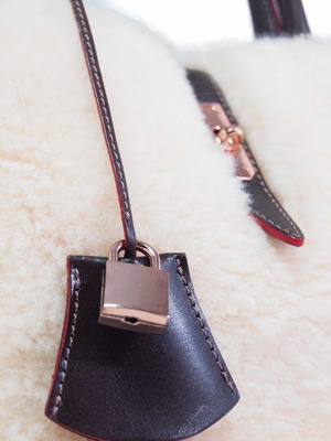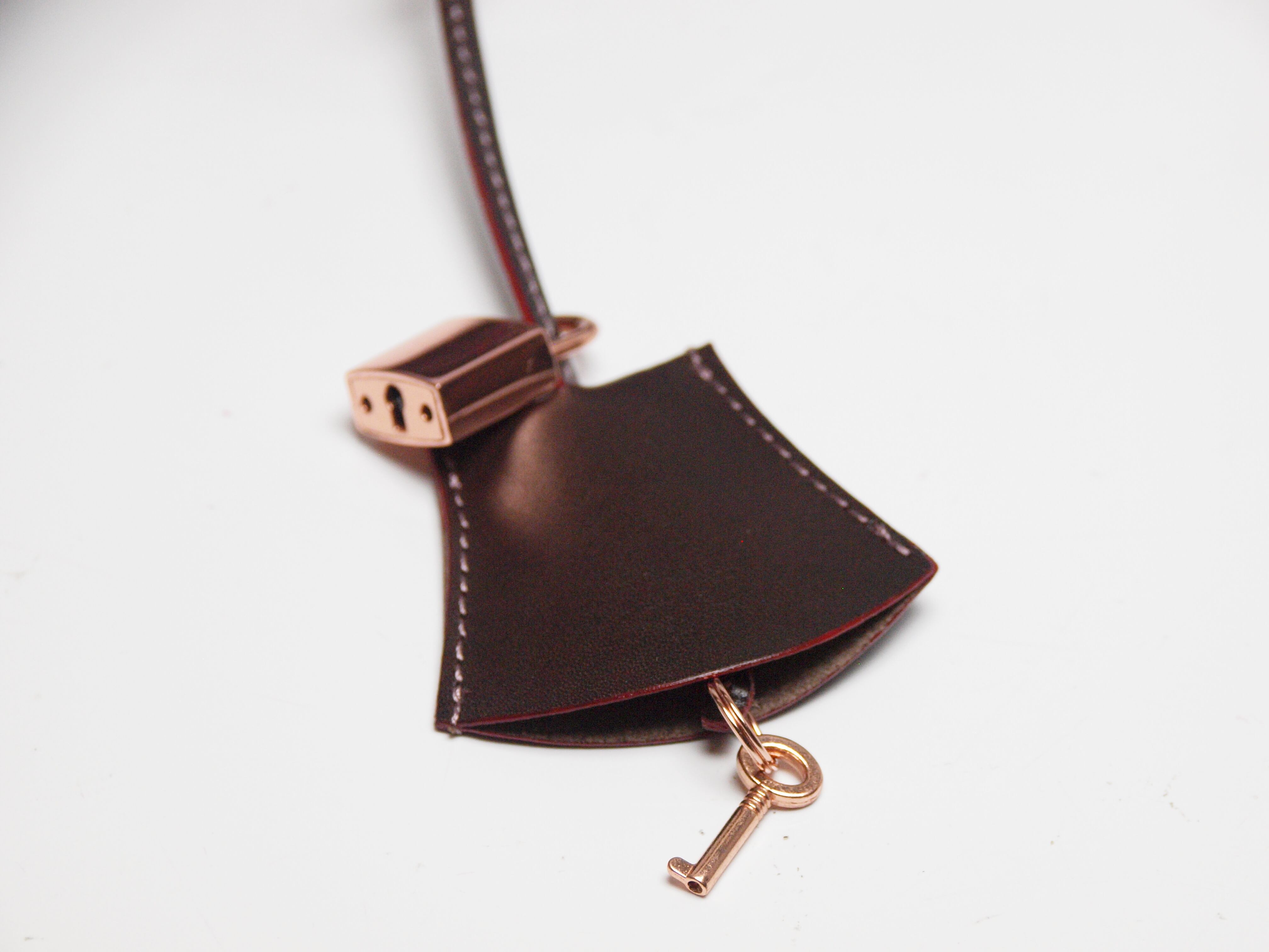 飾りにもなる鍵でひねり金物を留めることができます。小物を入れるムートンチャームが付いています。