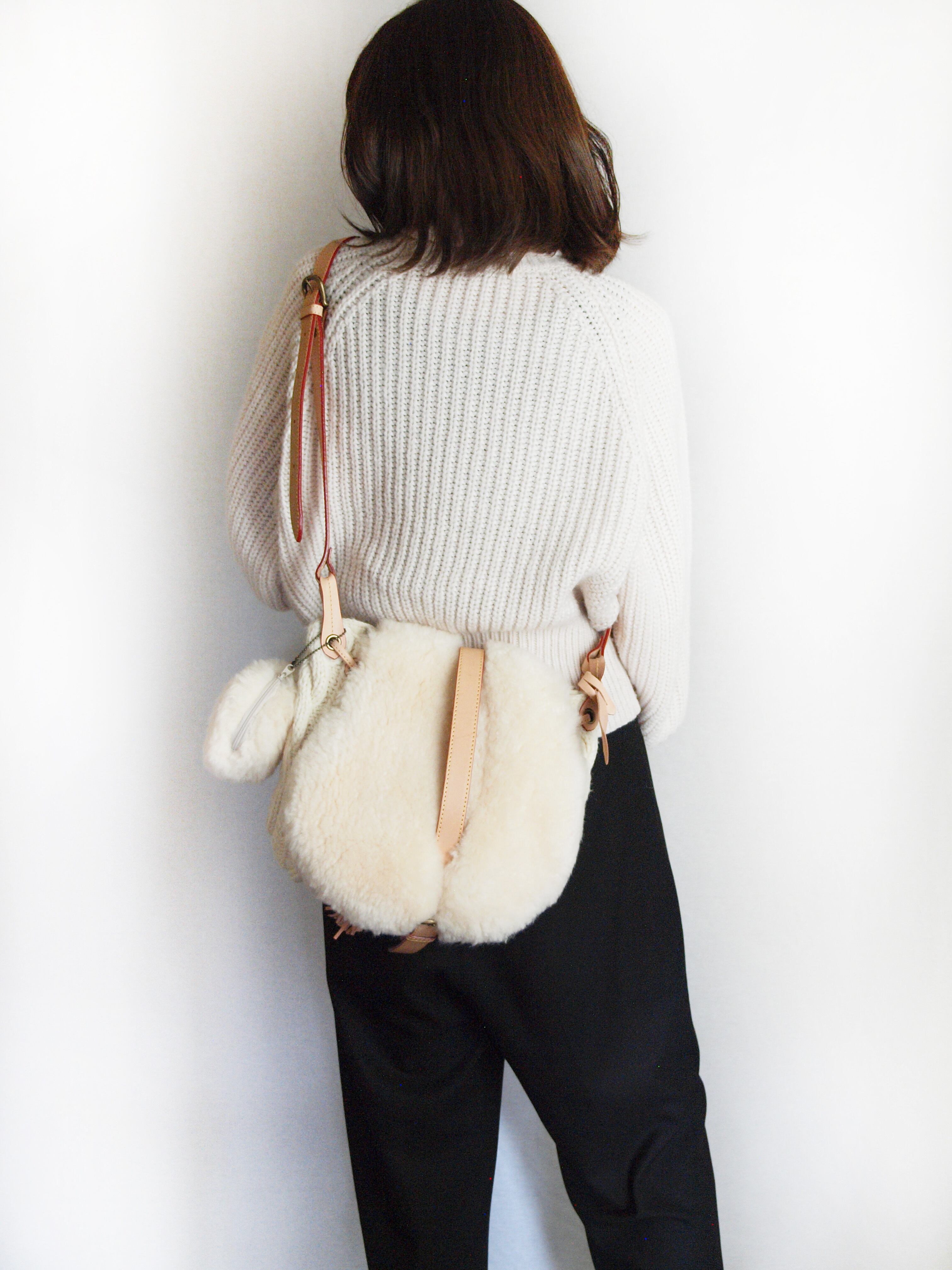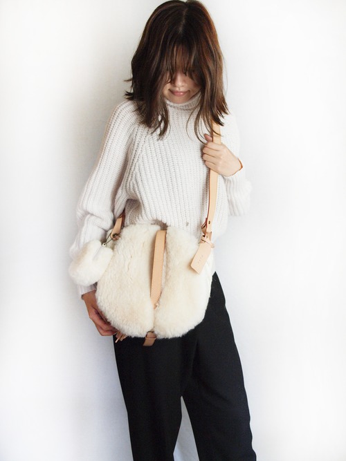 長財布、500mlペットボトルなど収納出来るショルダーです。小物を入れるムートンチャームが付いています。
