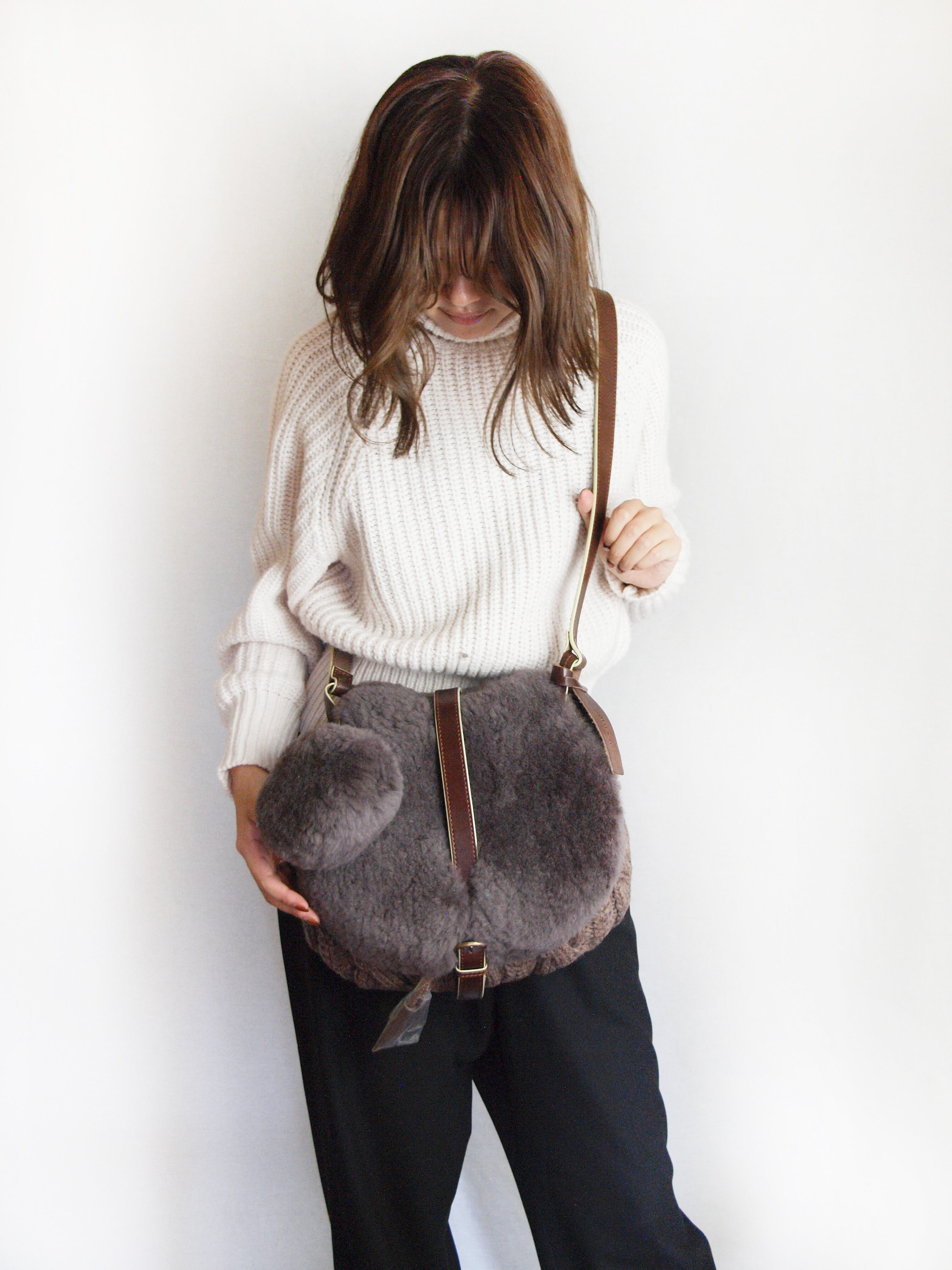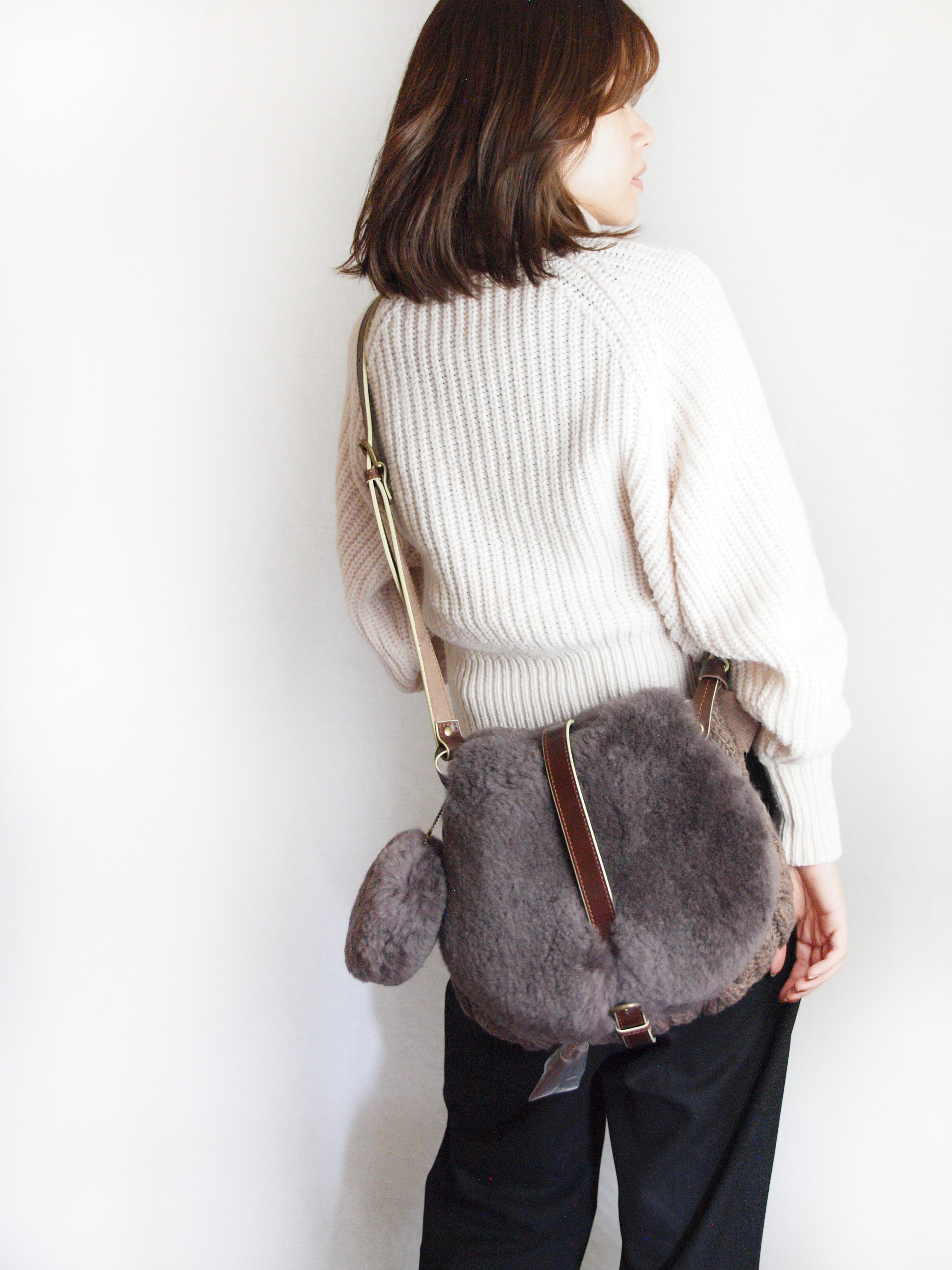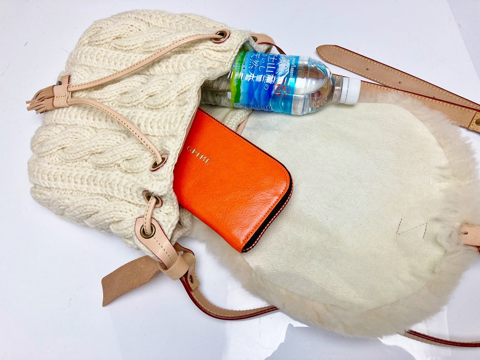 長財布、500mlペットボトルなど収納出来るショルダーです。小物を入れるムートンチャームが付いています。