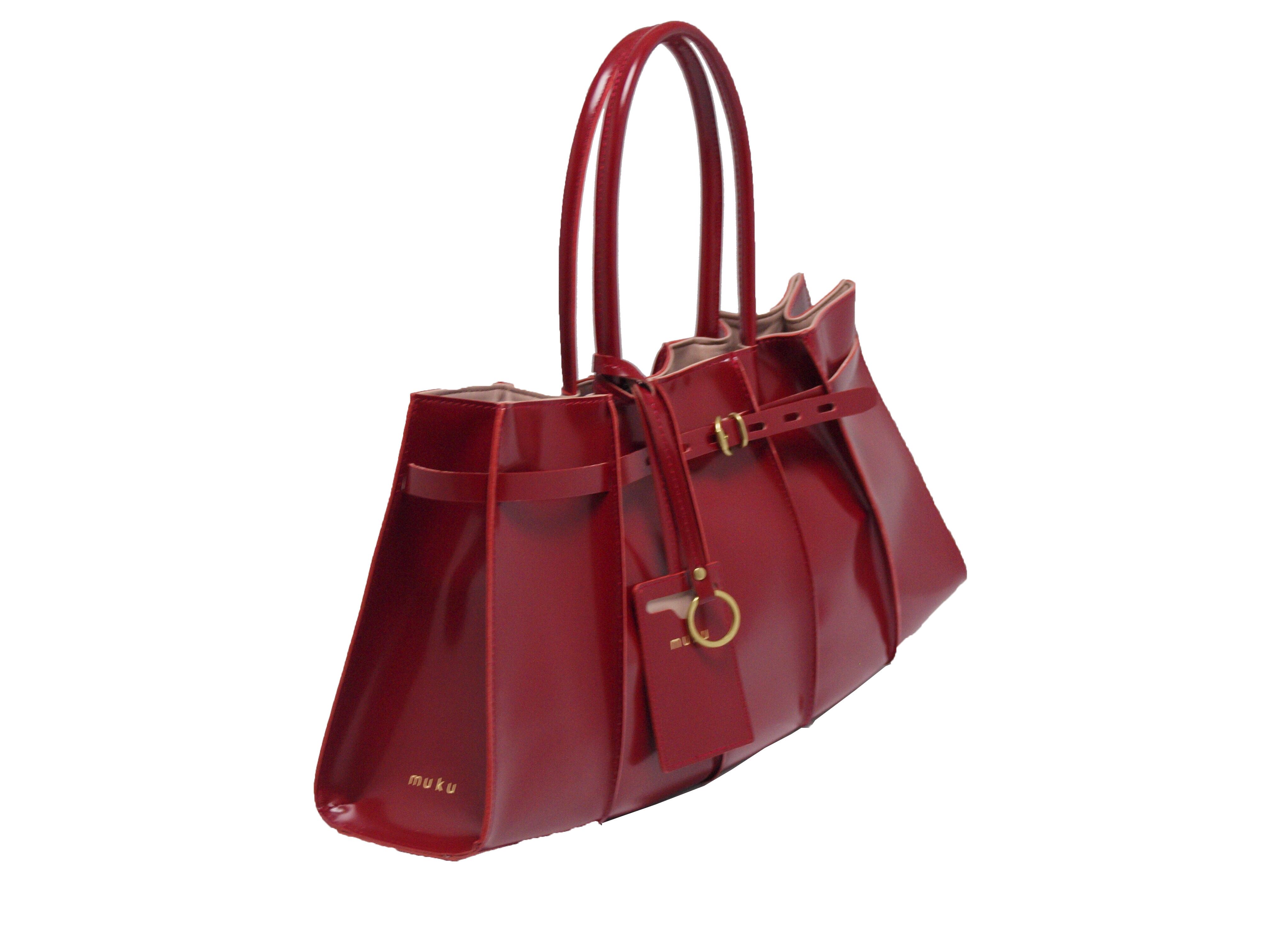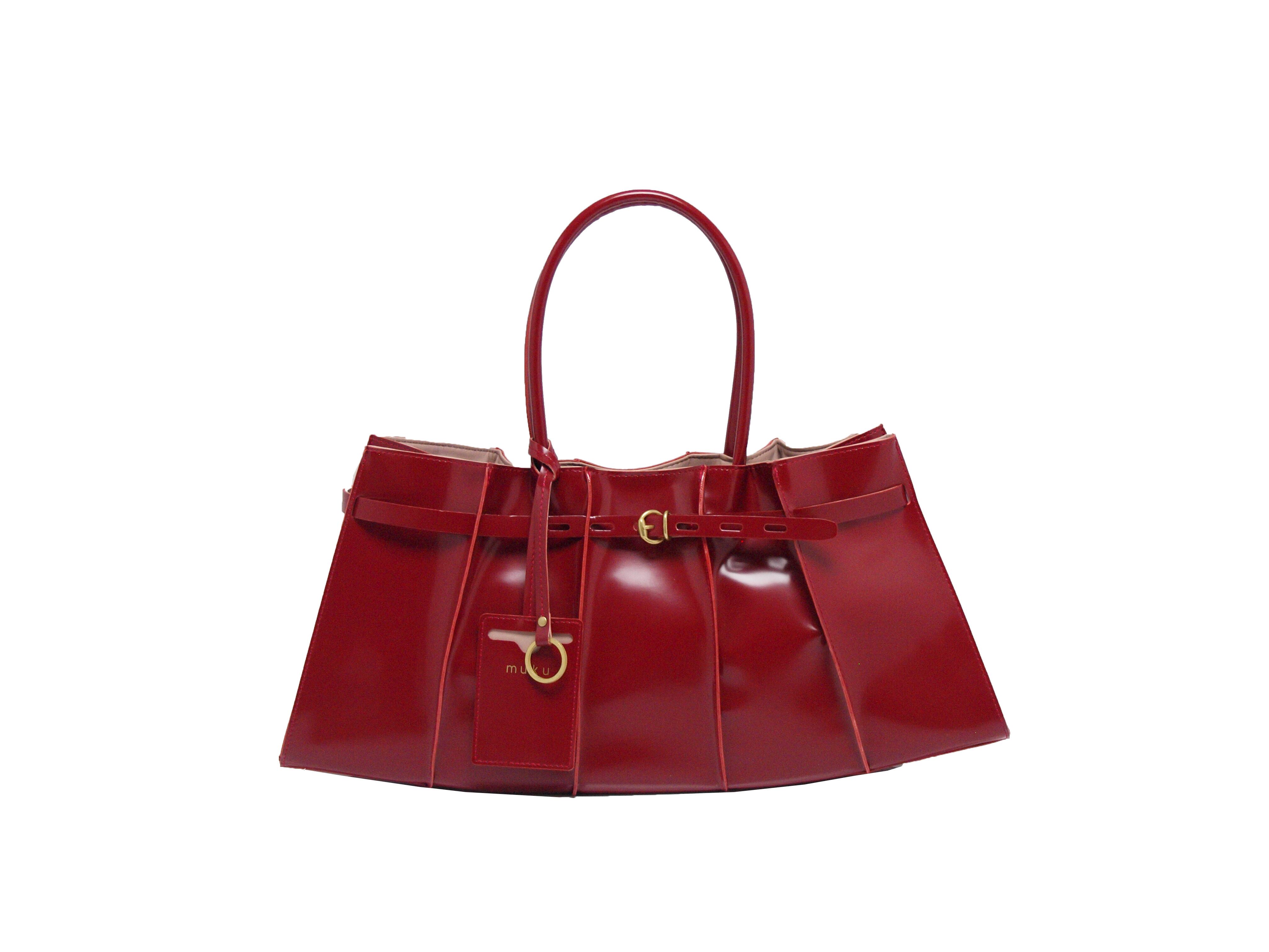 muku VERRE 784 レッド ガラスレザー トートバッグ 横長サイズ