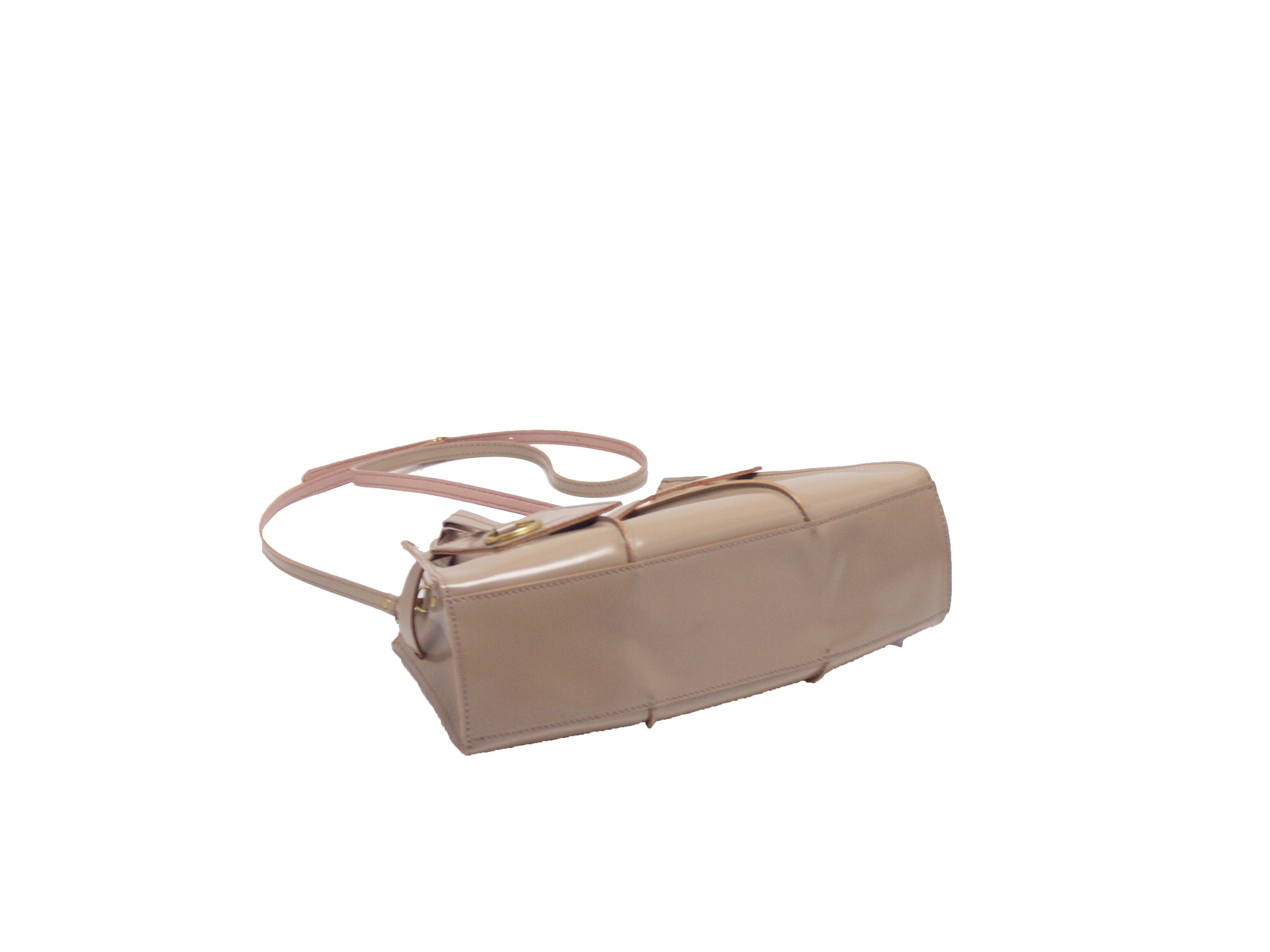 光沢のある表面の艶が特徴のガラスレザーを使用し、綺麗なバッグに仕上げました。