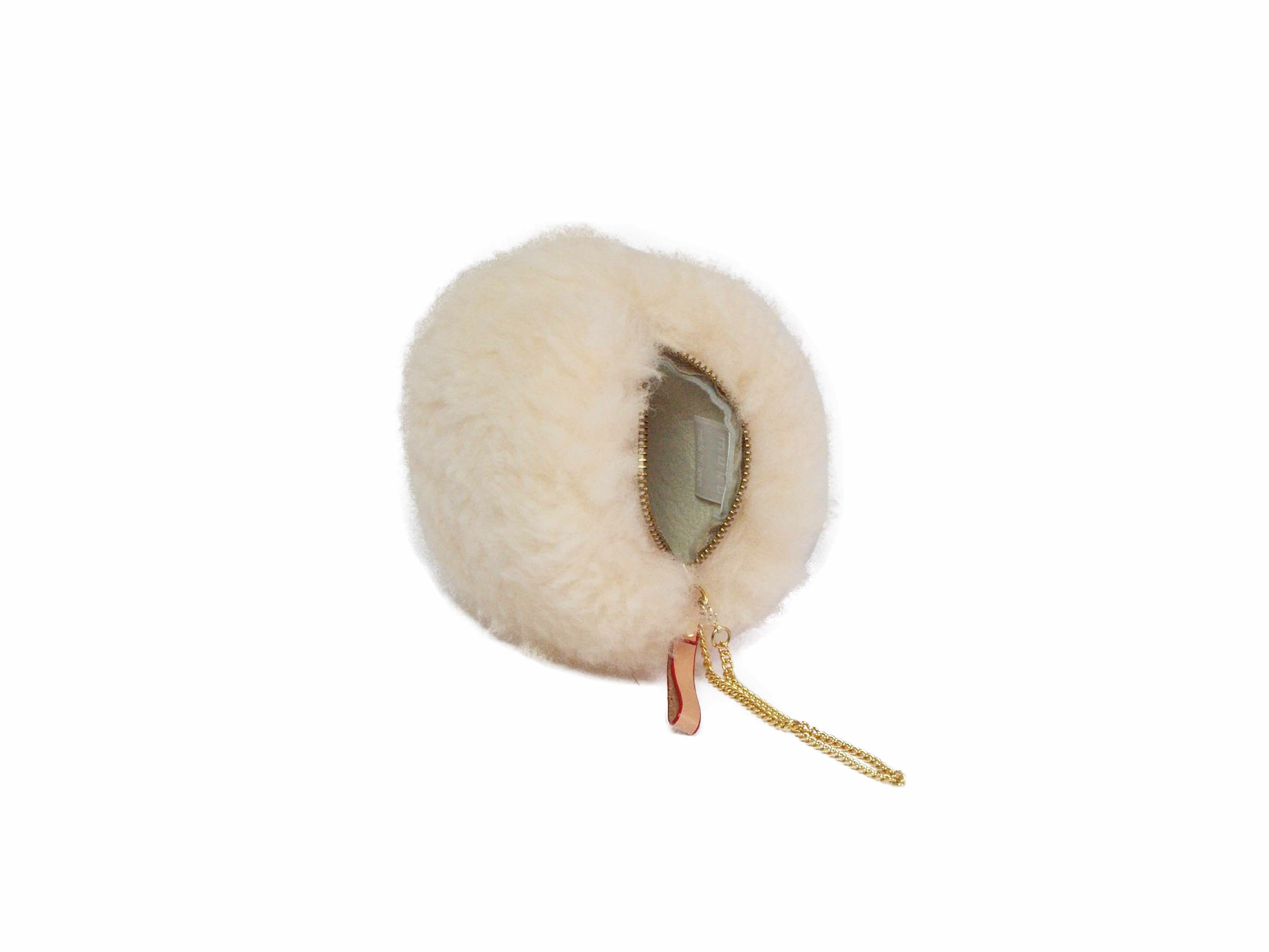 バックチャームにもできるサイズ感の可愛いムートンポーチ。