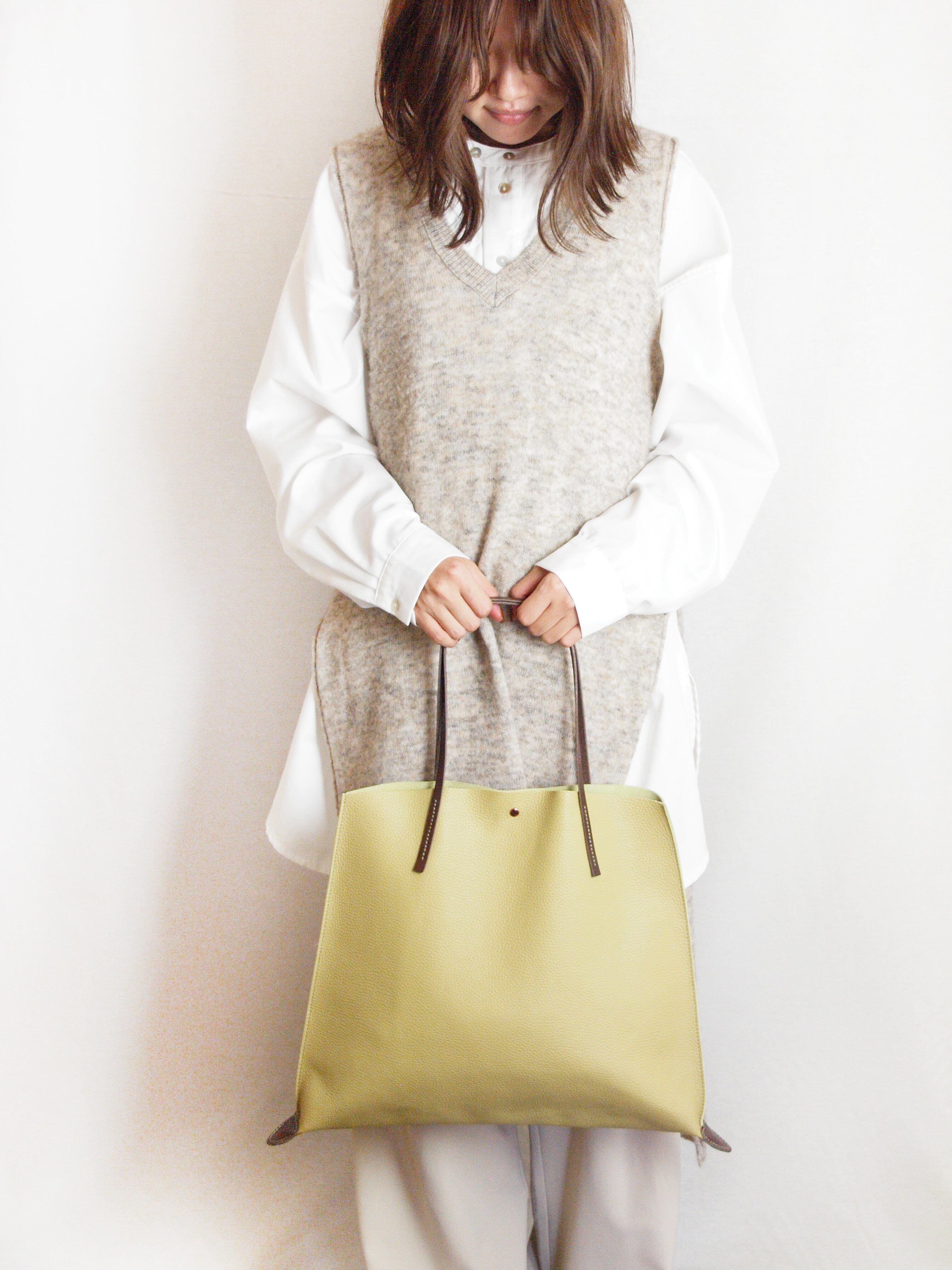 裏地処理した発色の綺麗なイタリア製シュリンクレザーです。ヌメ革ショルダーとピンクゴールド金具がポイントです。