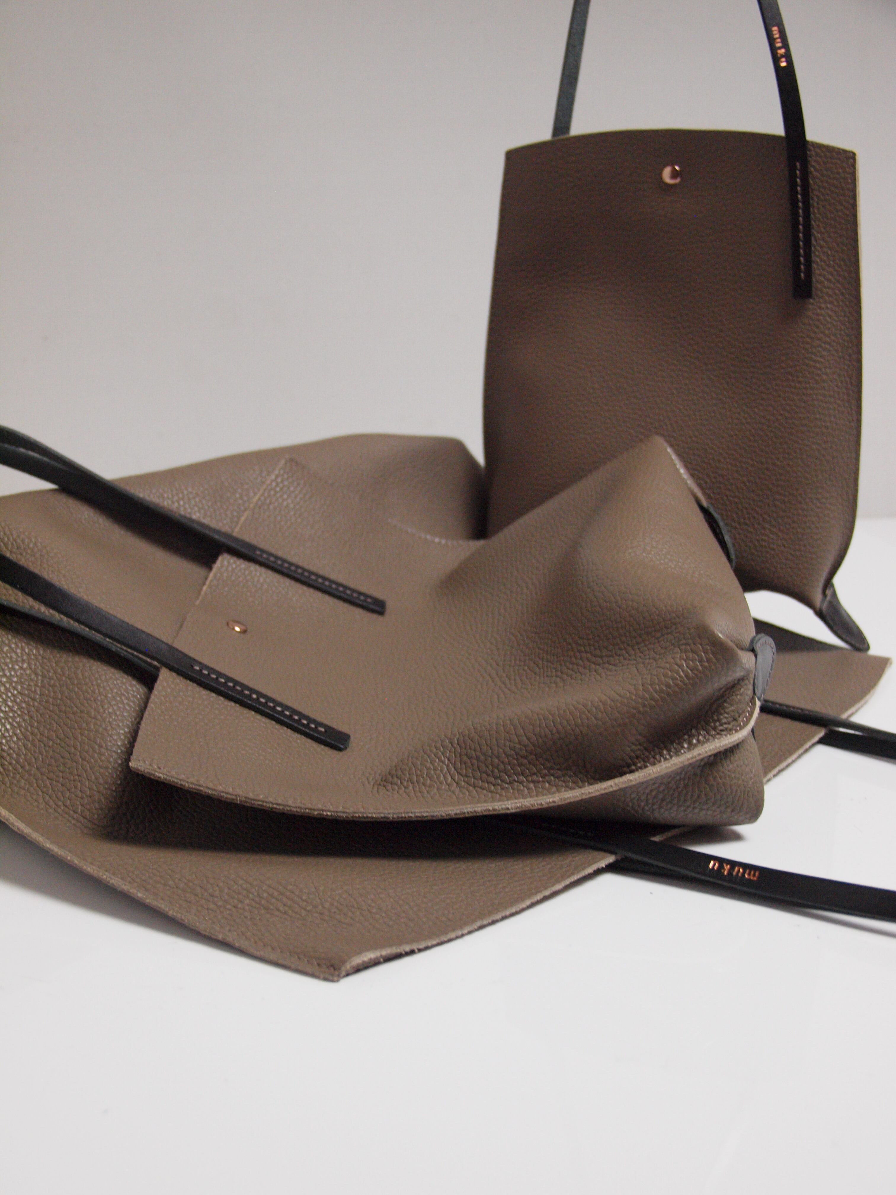 裏地処理した発色の綺麗なイタリア製シュリンクレザーです。ヌメ革ショルダーとピンクゴールド金具がポイントです。