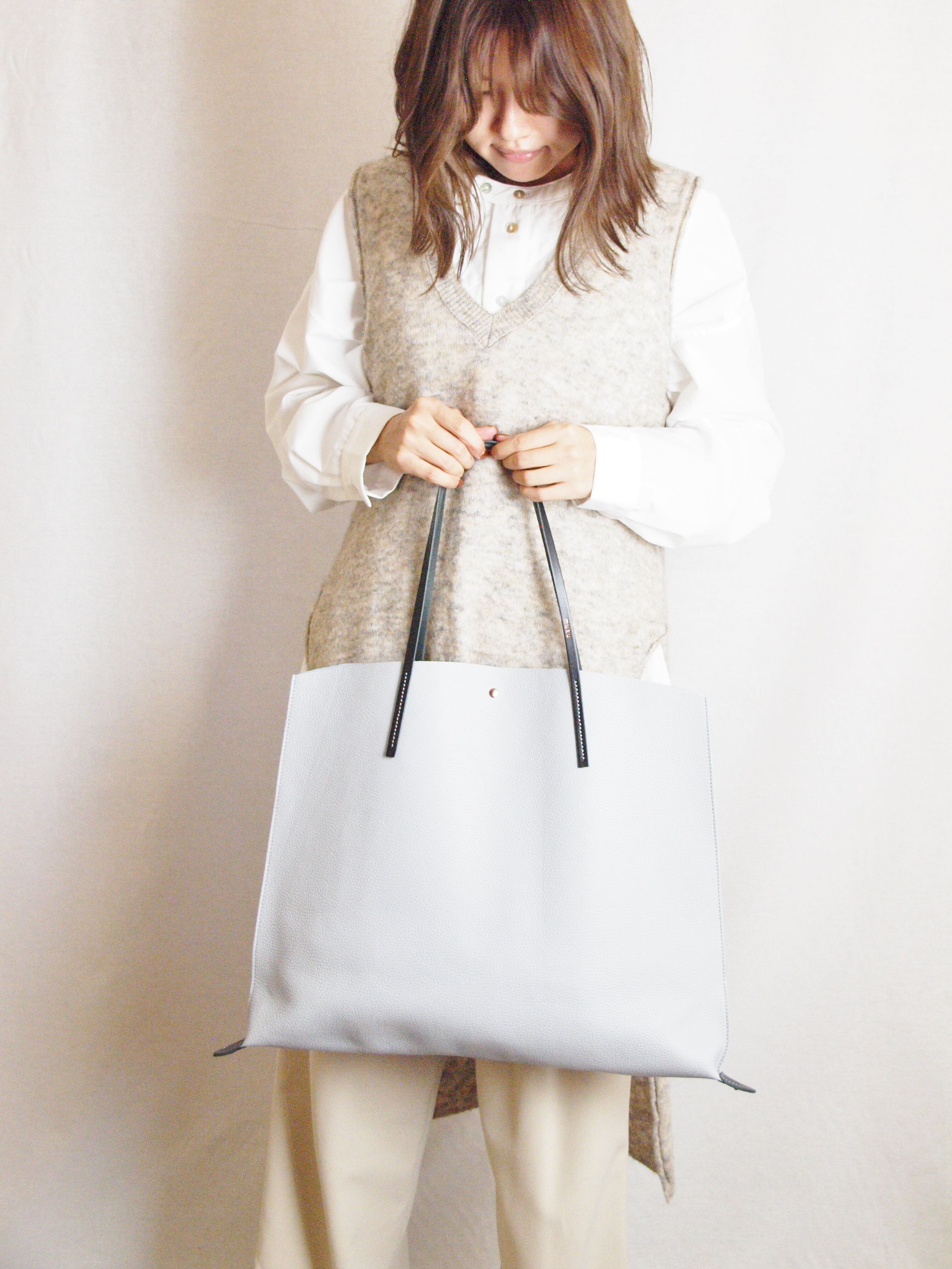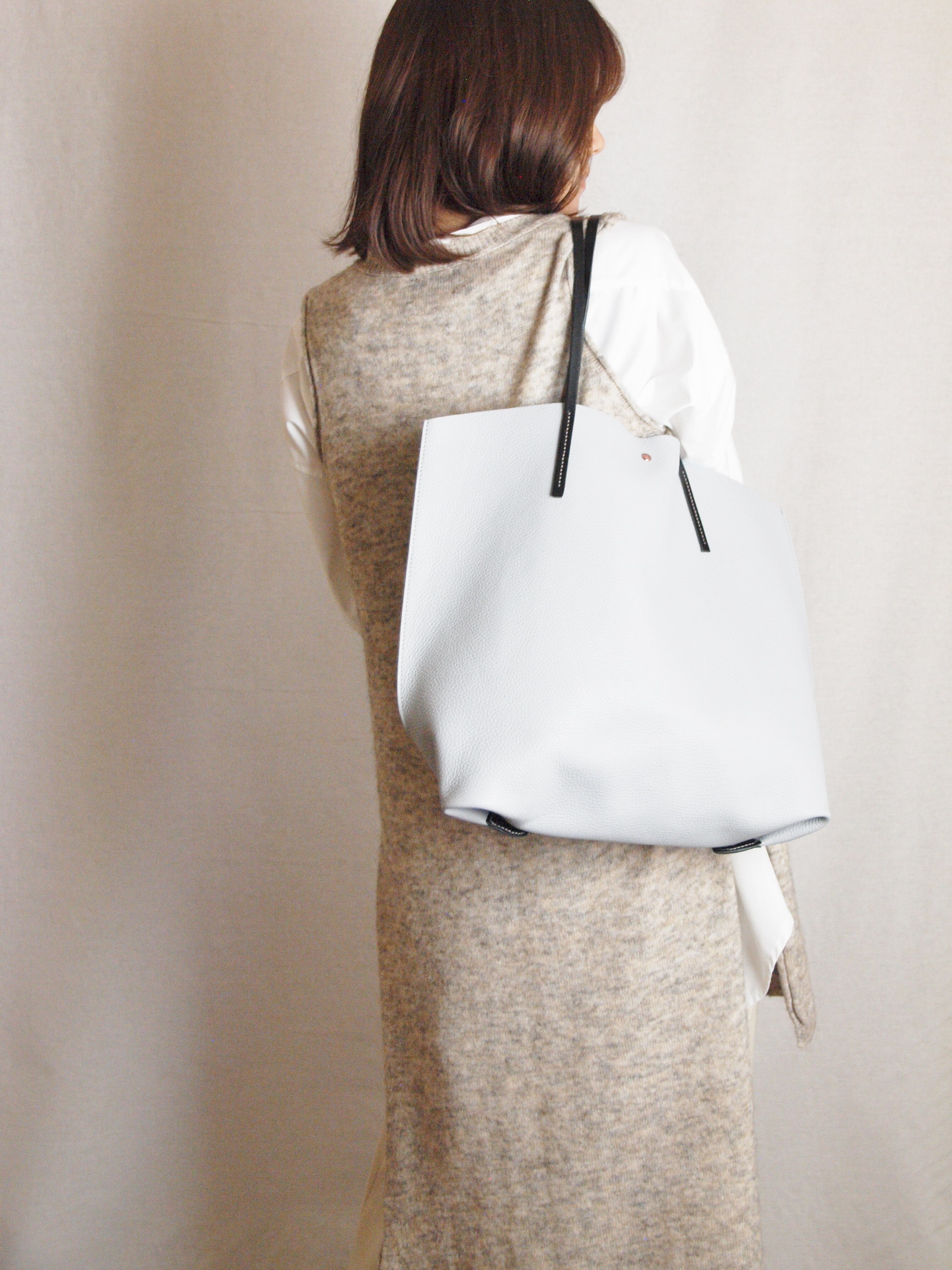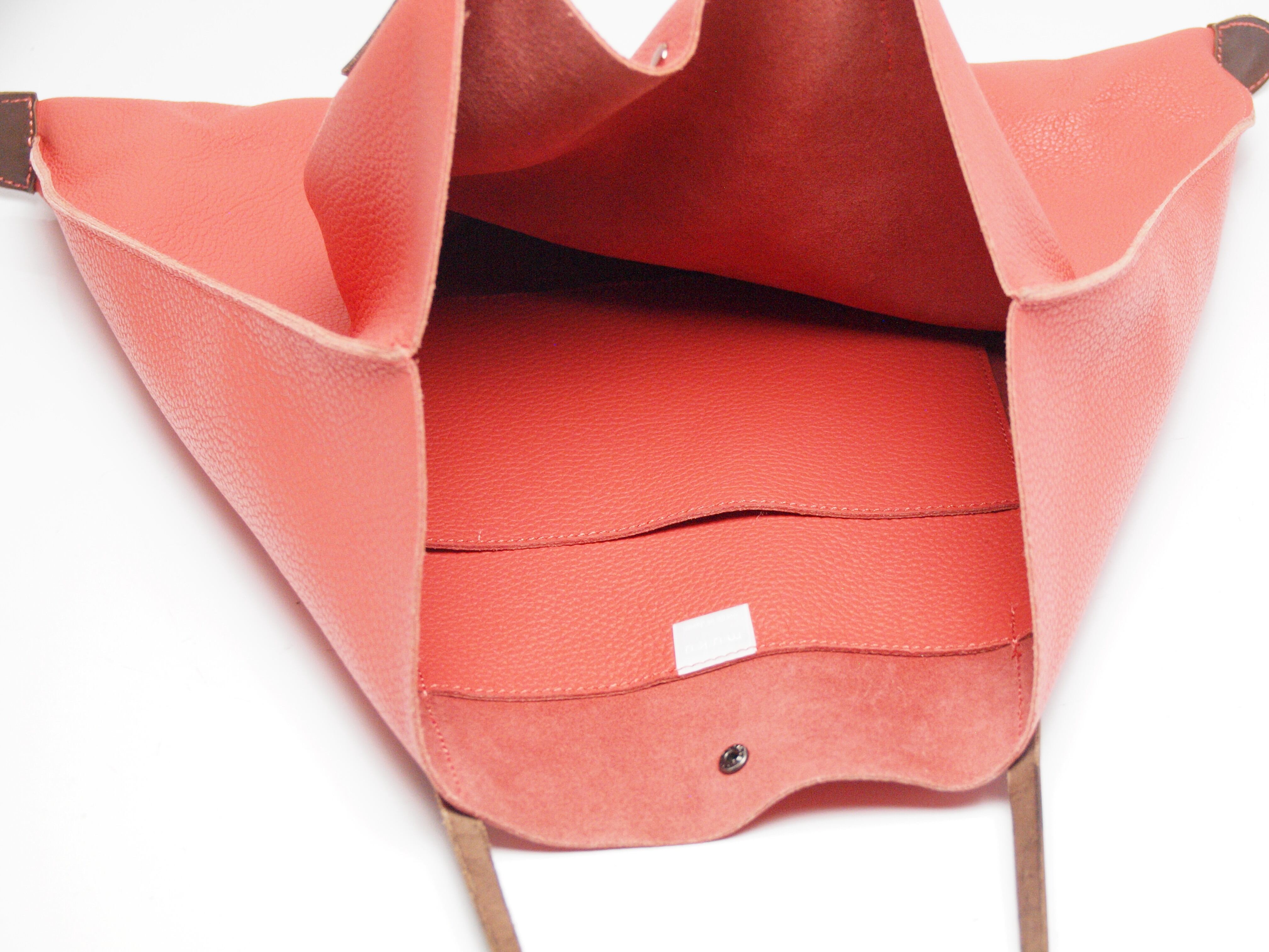 裏地処理した発色の綺麗なイタリア製シュリンクレザーです。ヌメ革ショルダーとピンクゴールド金具がポイントです。