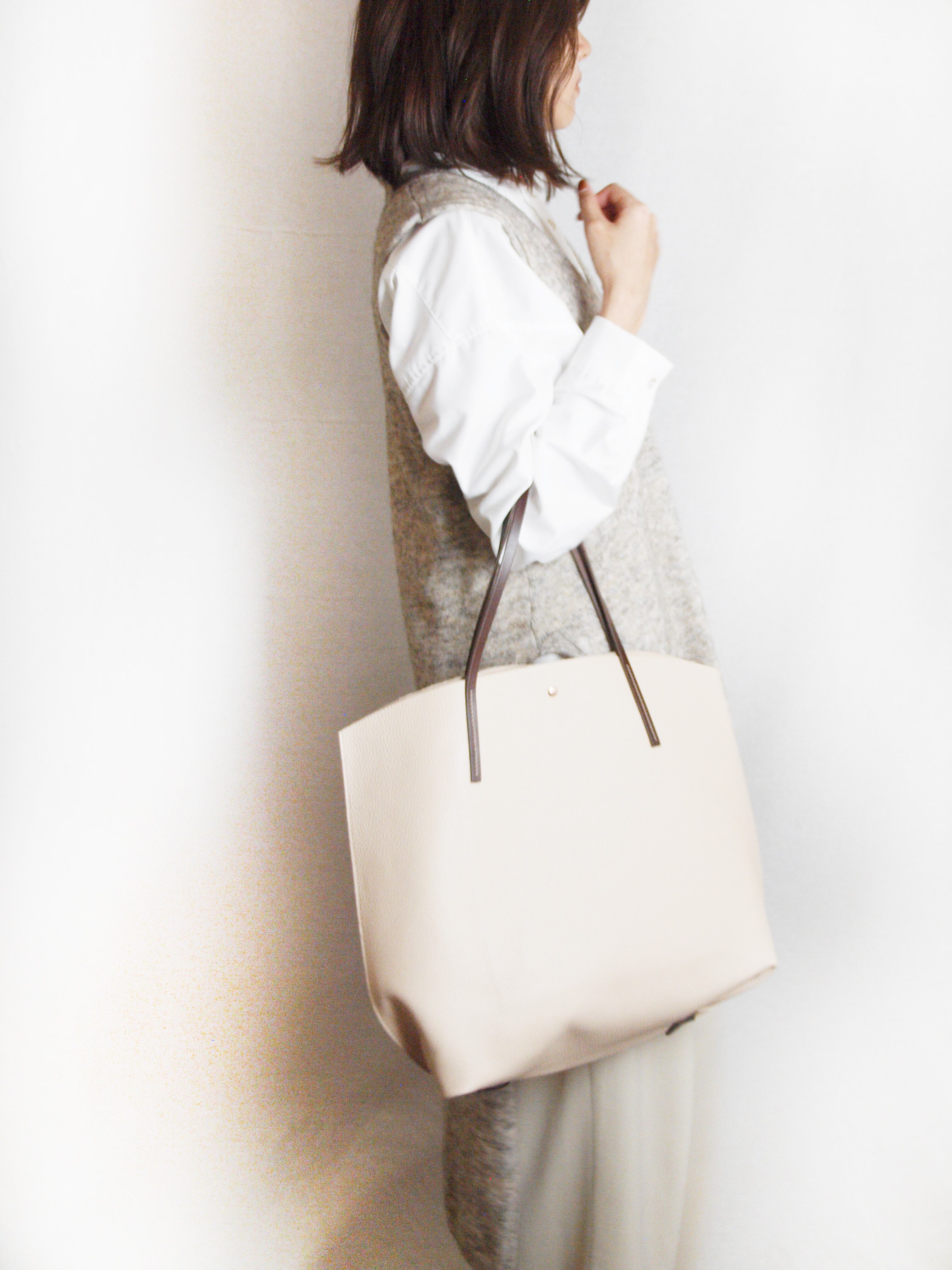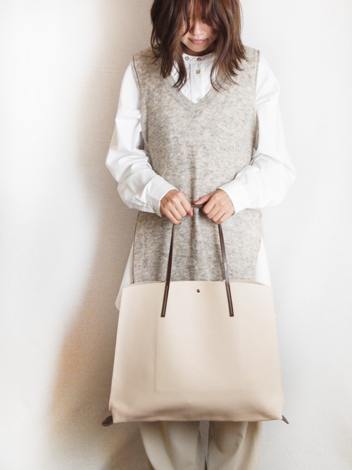 裏地処理した発色の綺麗なイタリア製シュリンクレザーです。ヌメ革ショルダーとピンクゴールド金具がポイントです。