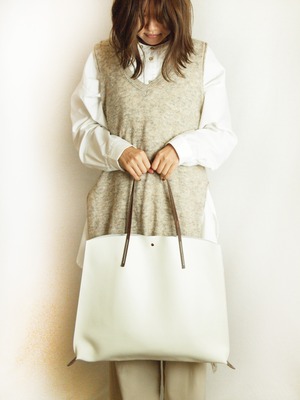 裏地処理した発色の綺麗なイタリア製シュリンクレザーです。ヌメ革ショルダーとピンクゴールド金具がポイントです。
