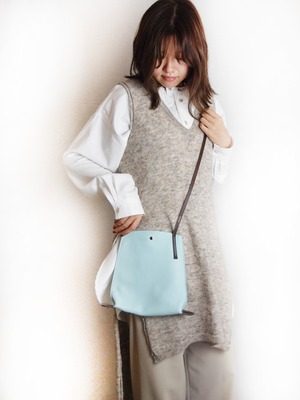 裏地処理した発色の綺麗なイタリア製シュリンクレザーです。ヌメ革ショルダーとピンクゴールド金具がポイントです。