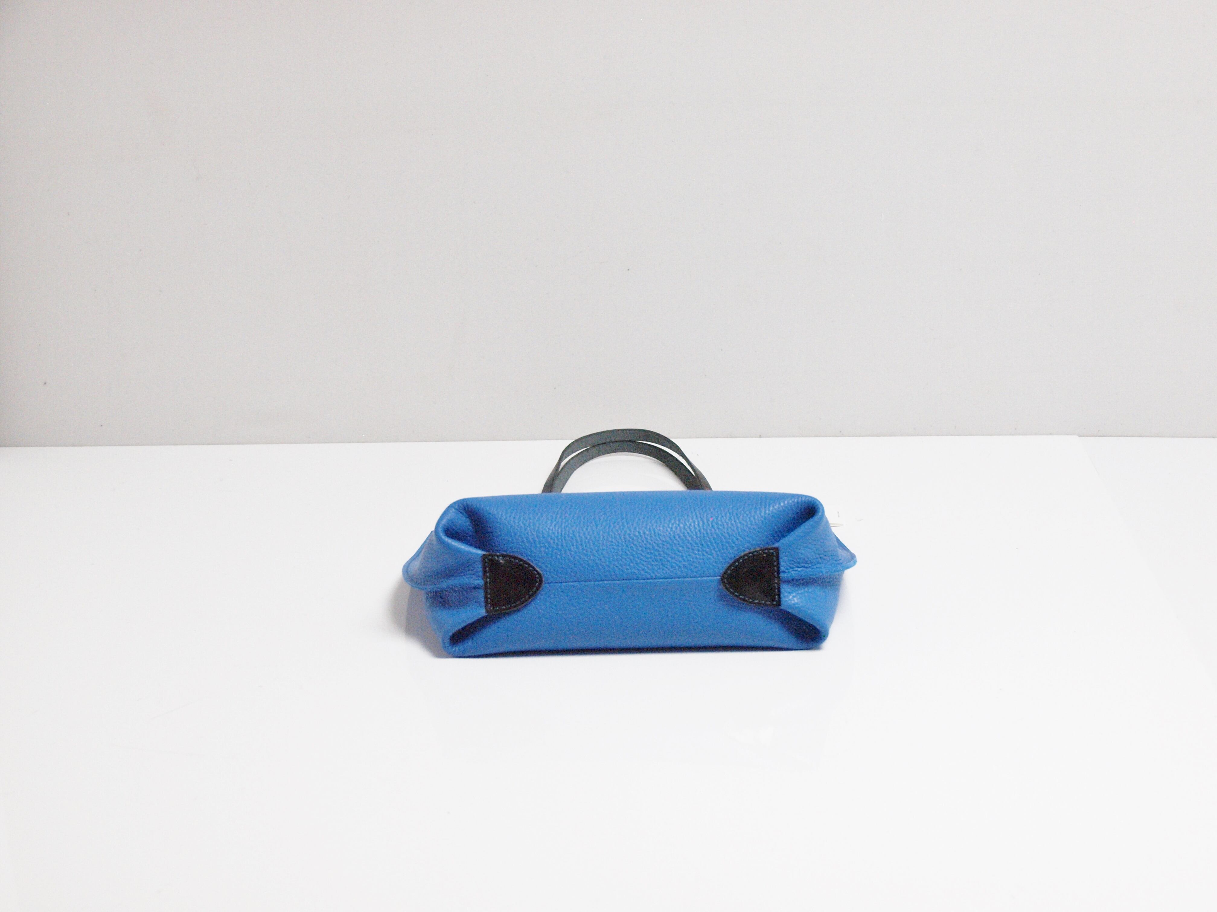 裏地処理した発色の綺麗なイタリア製シュリンクレザーです。ヌメ革ショルダーとピンクゴールド金具がポイントです。 ホックをとめれば底マチが作れます。