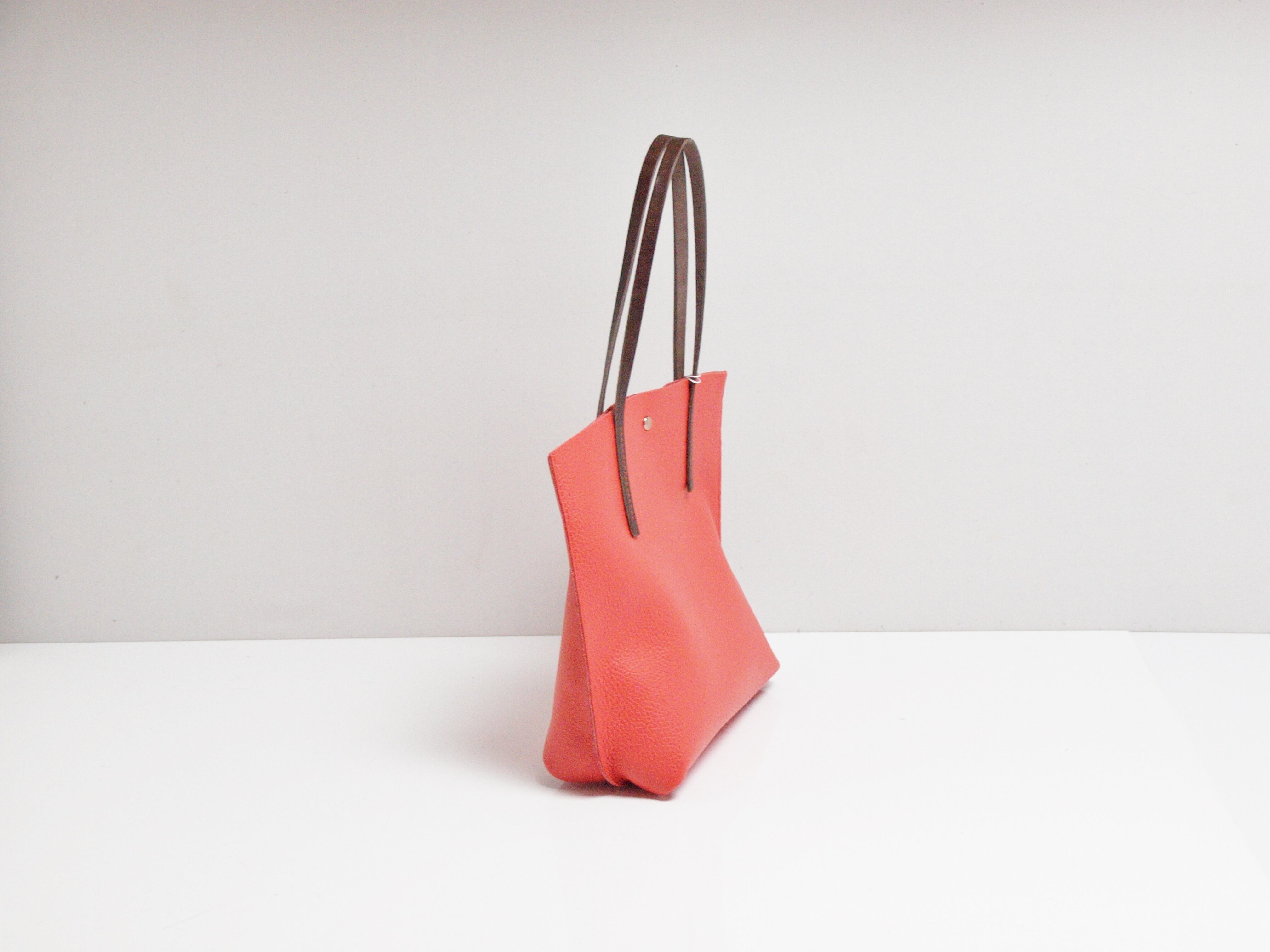 裏地処理した発色の綺麗なイタリア製シュリンクレザーです。ヌメ革ショルダーとピンクゴールド金具がポイントです。