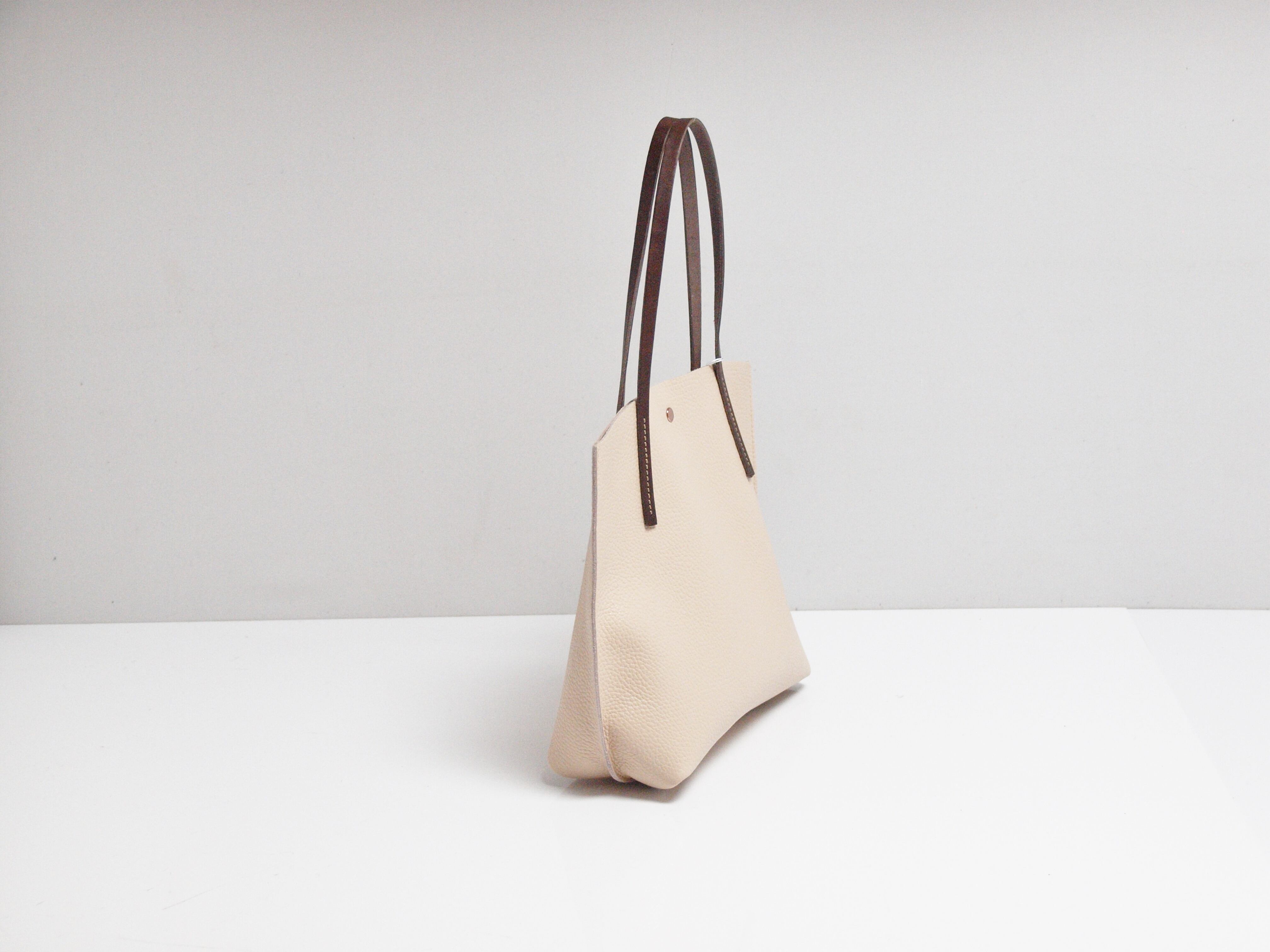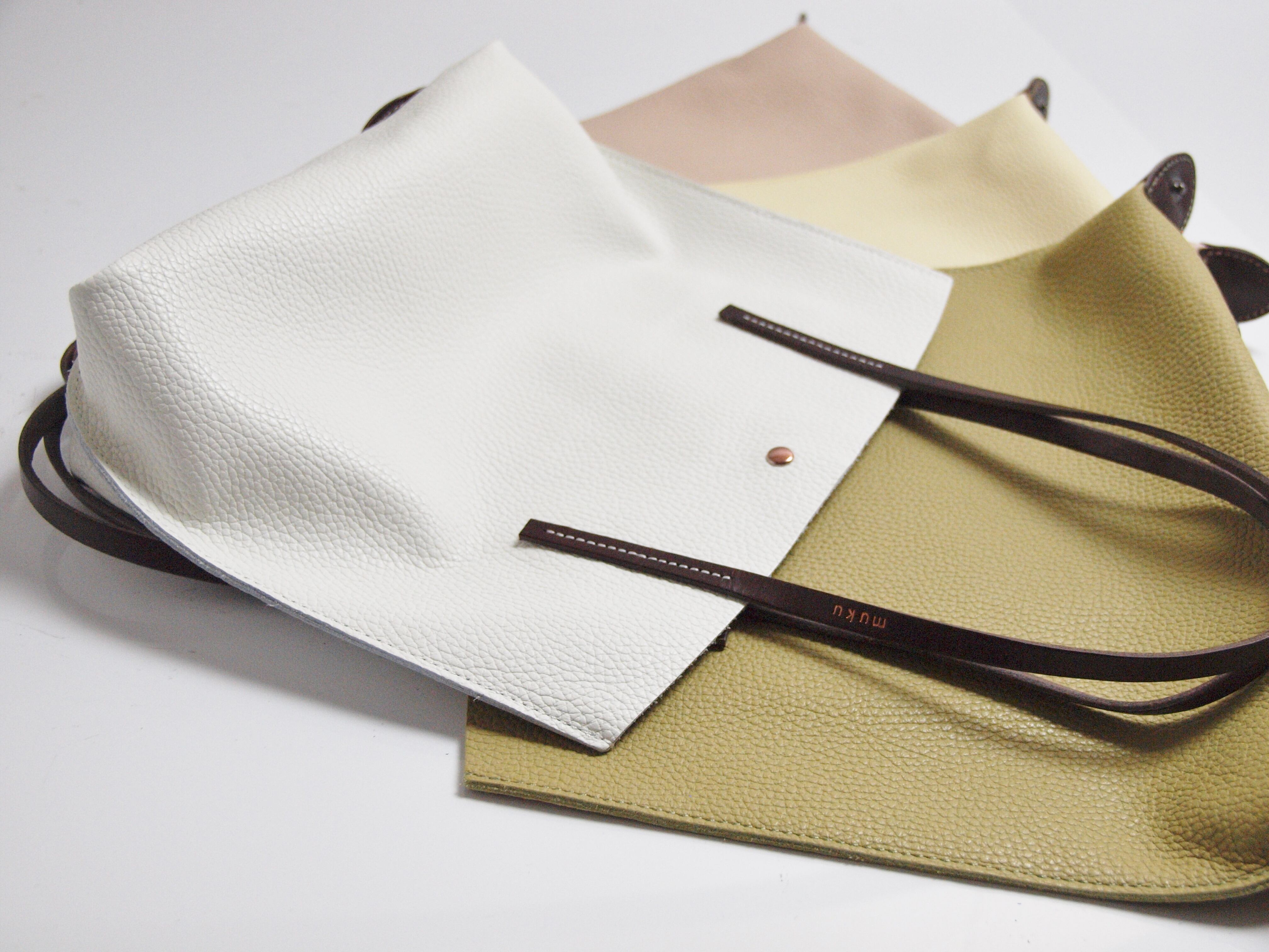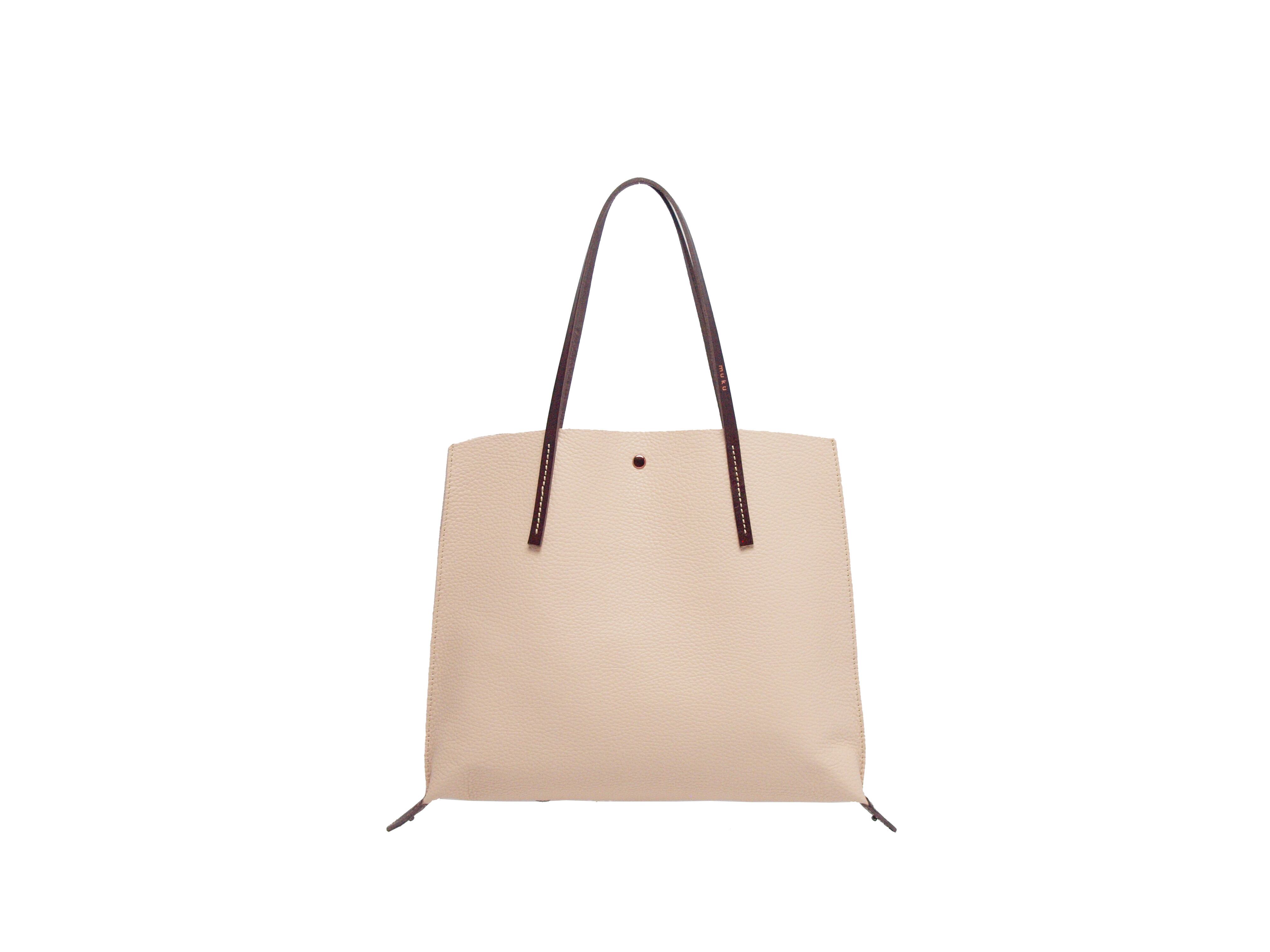 裏地処理した発色の綺麗なイタリア製シュリンクレザーです。ヌメ革ショルダーとピンクゴールド金具がポイントです。