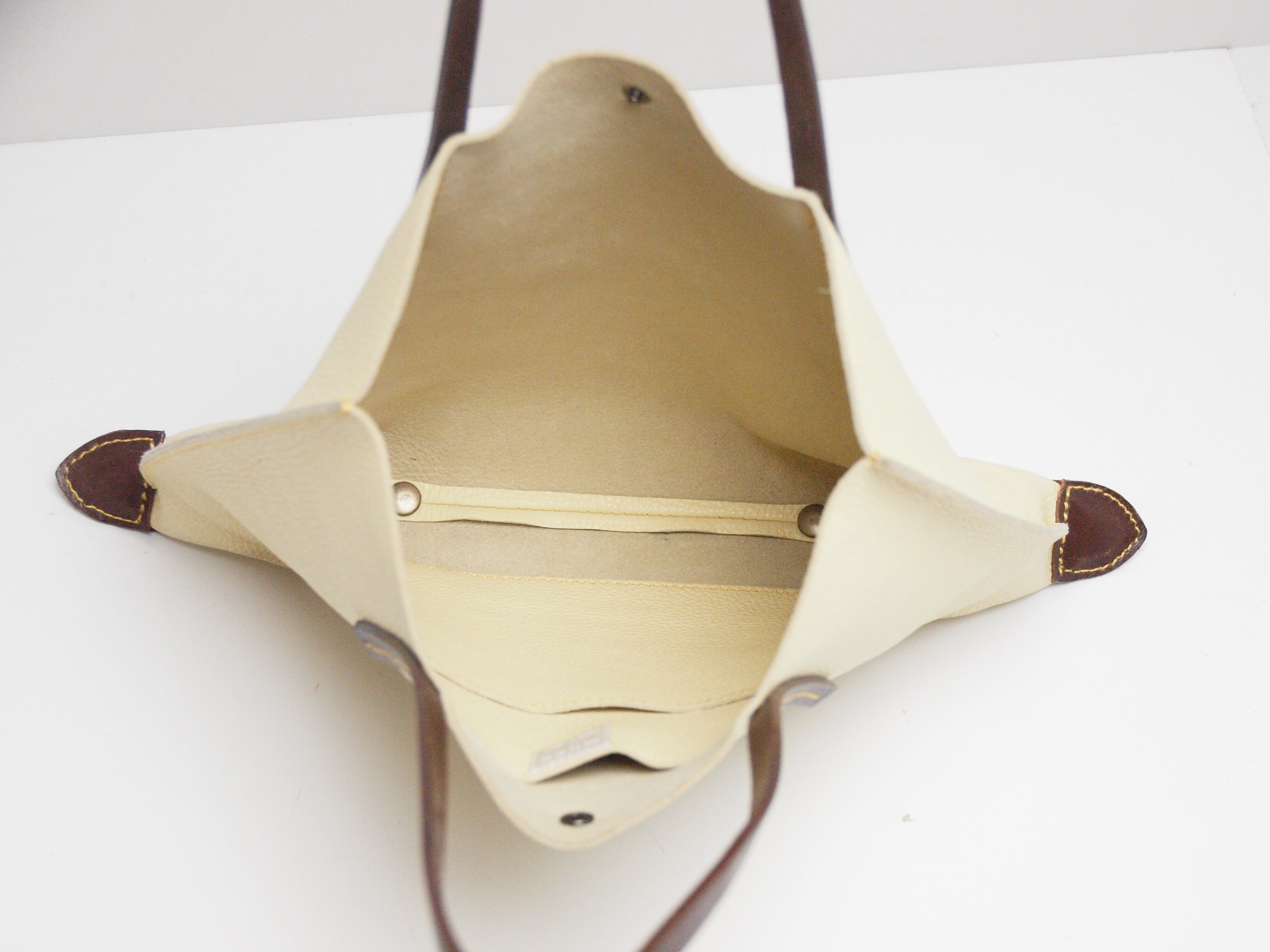 ホックをとめれば底マチが作れます。内ポケットが1つついています。
