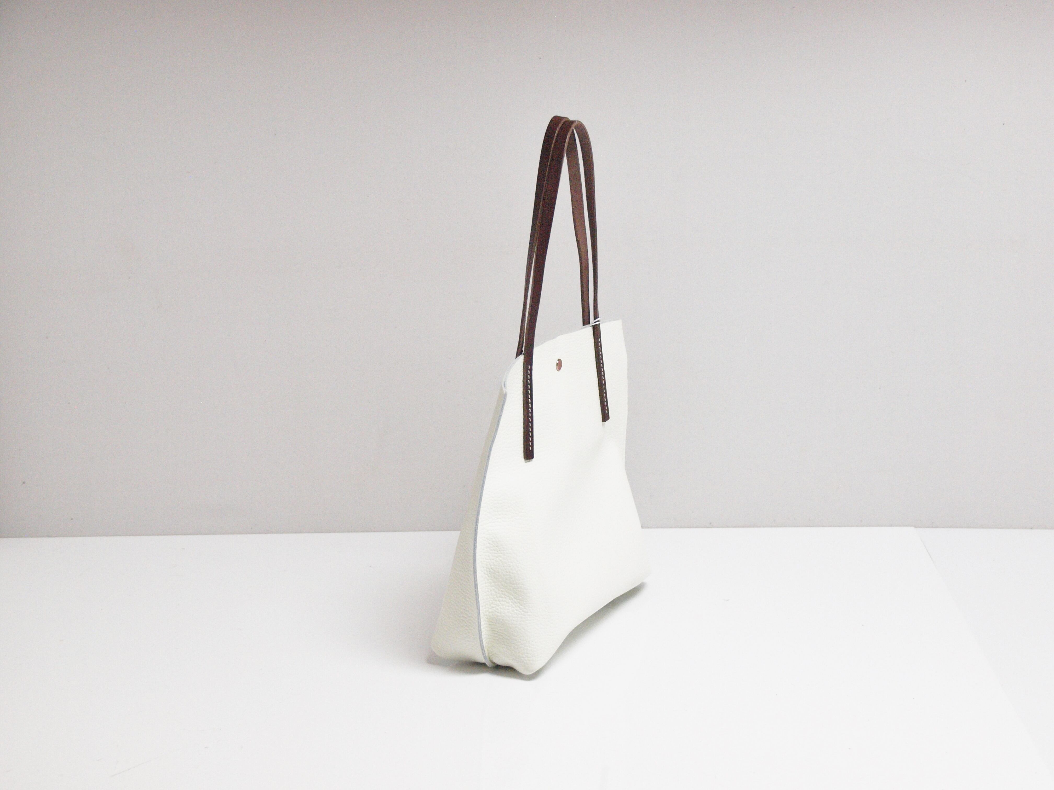 裏地処理した発色の綺麗なイタリア製シュリンクレザーです。ヌメ革ショルダーとピンクゴールド金具がポイントです。