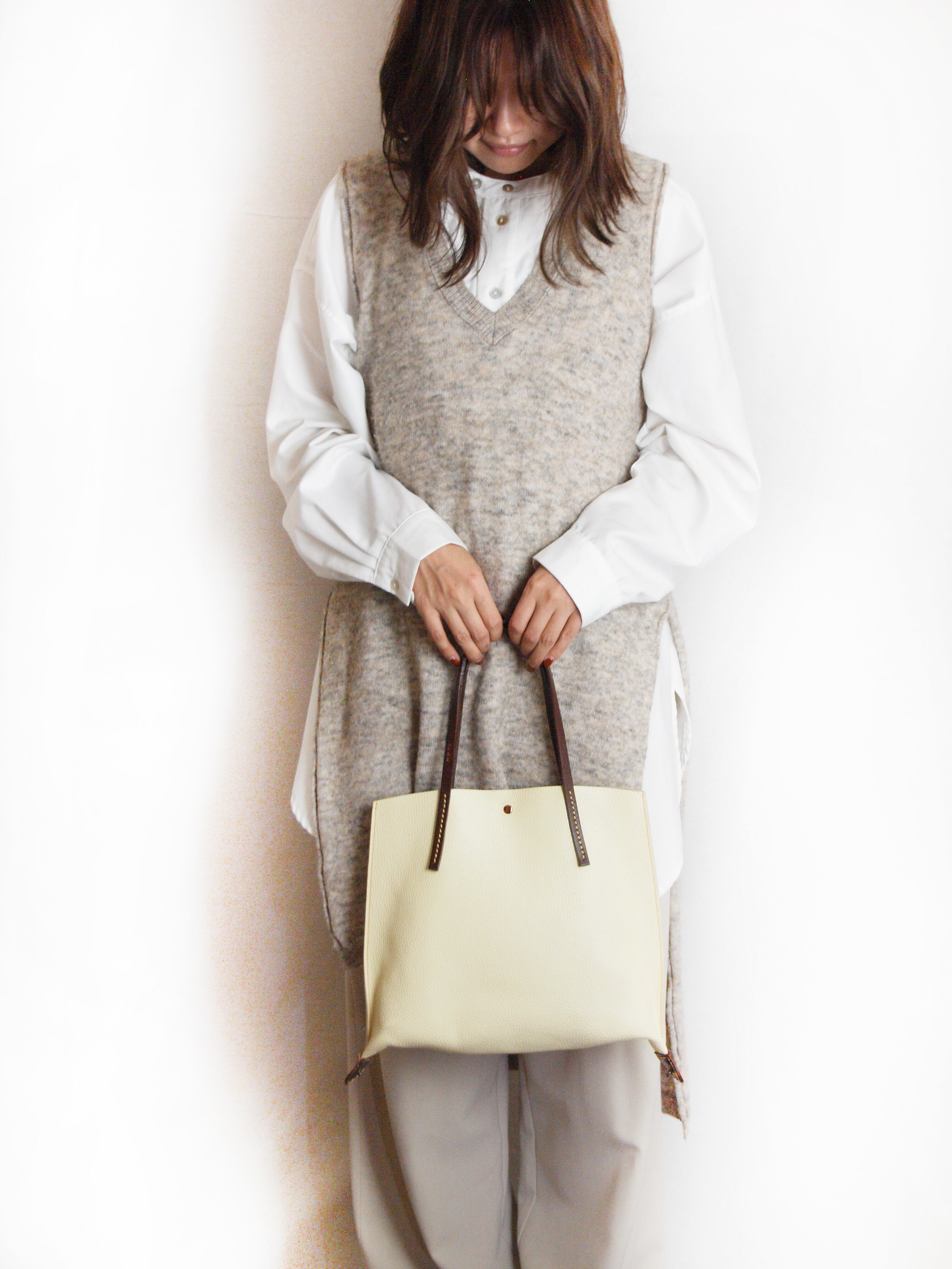 muku PAPIER 801 イエロー シュリンクレザー ミニトート ショルダーバッグ