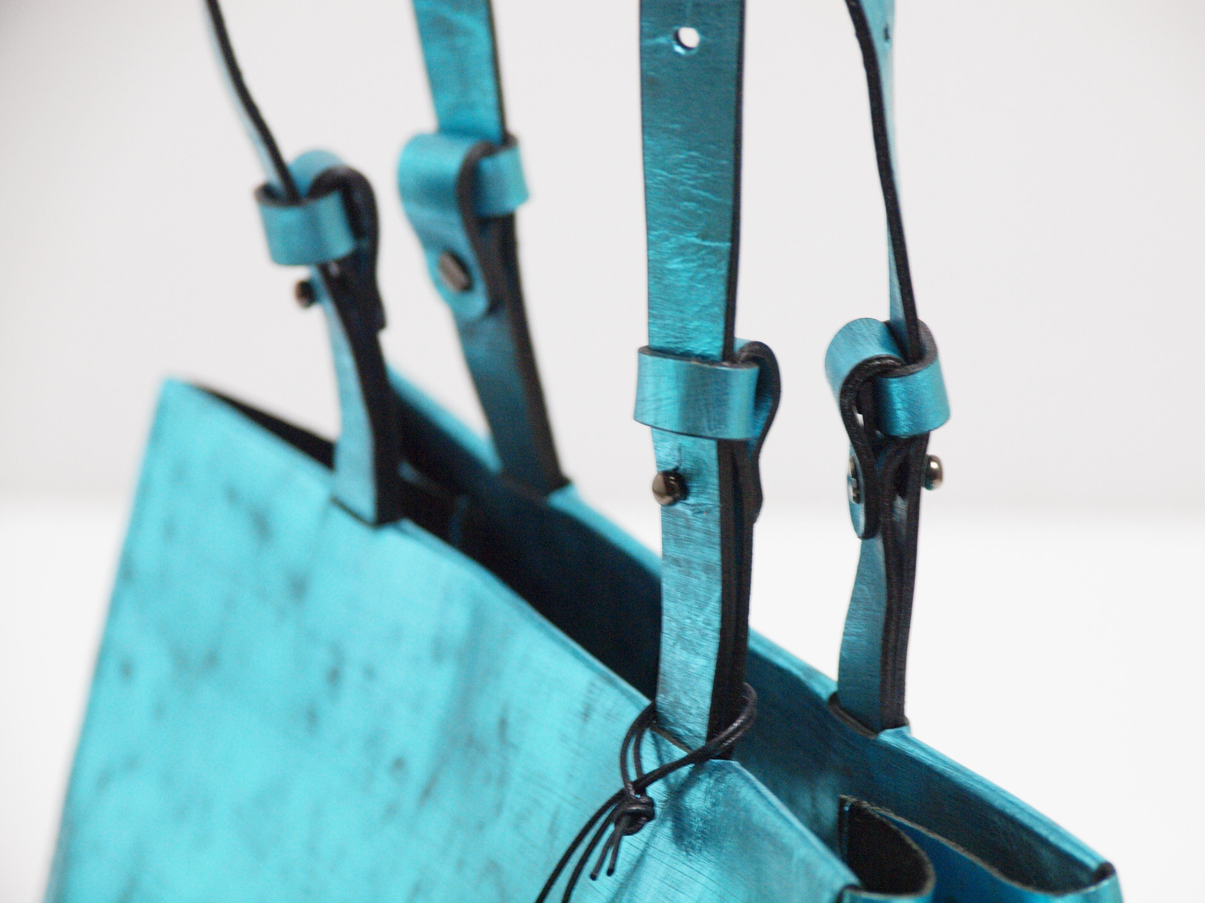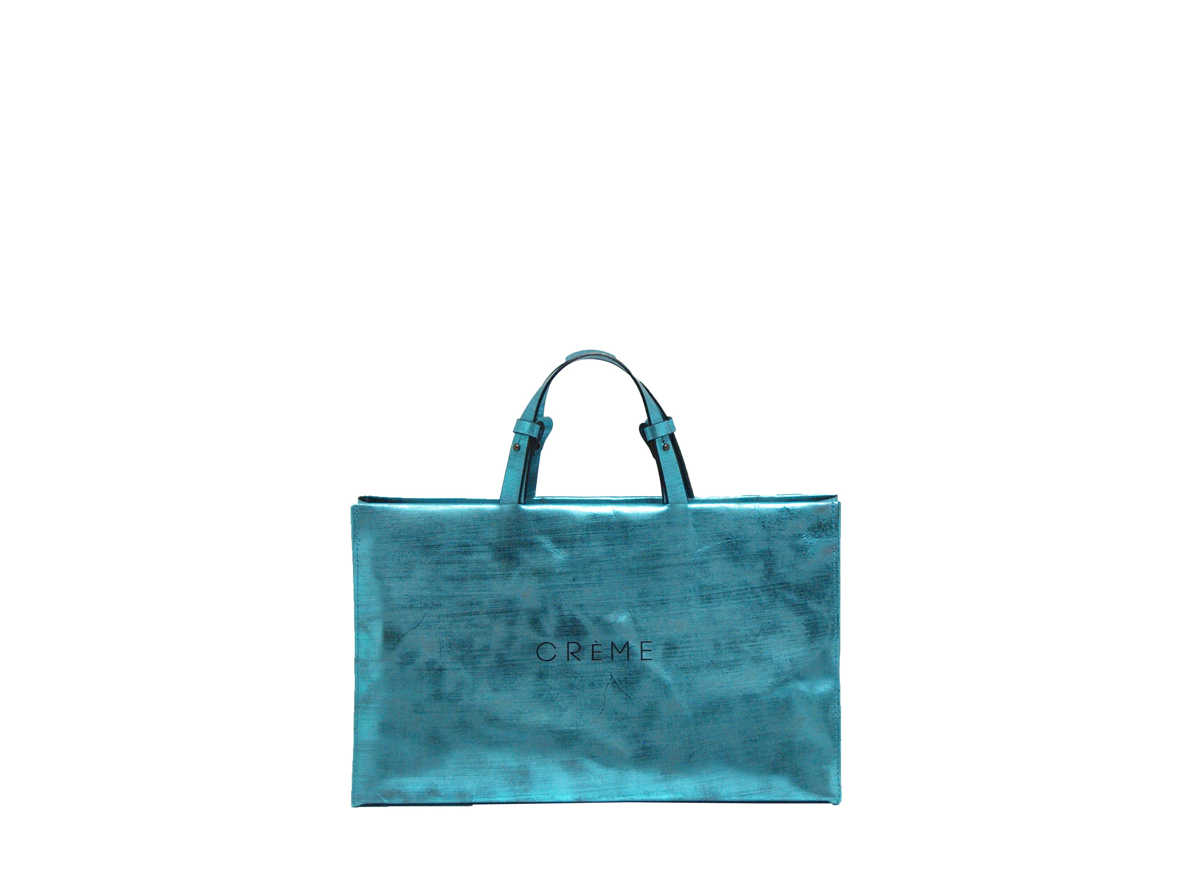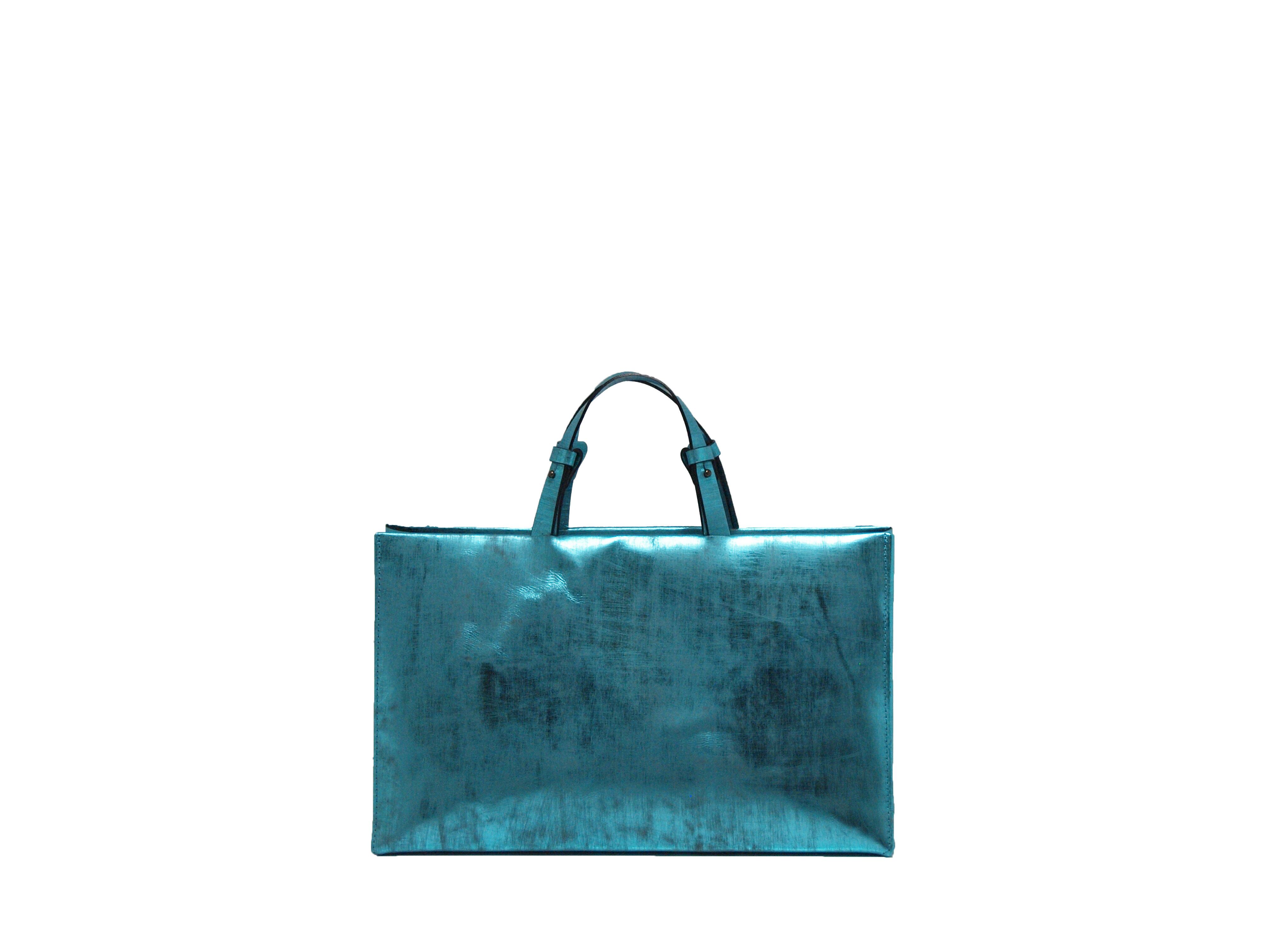箔を貼ったキップレザー(牛革)にヴィンテージ加工(ダメージを与える為に革を削る)を施しており、見た目以上に軽いバッグです。
