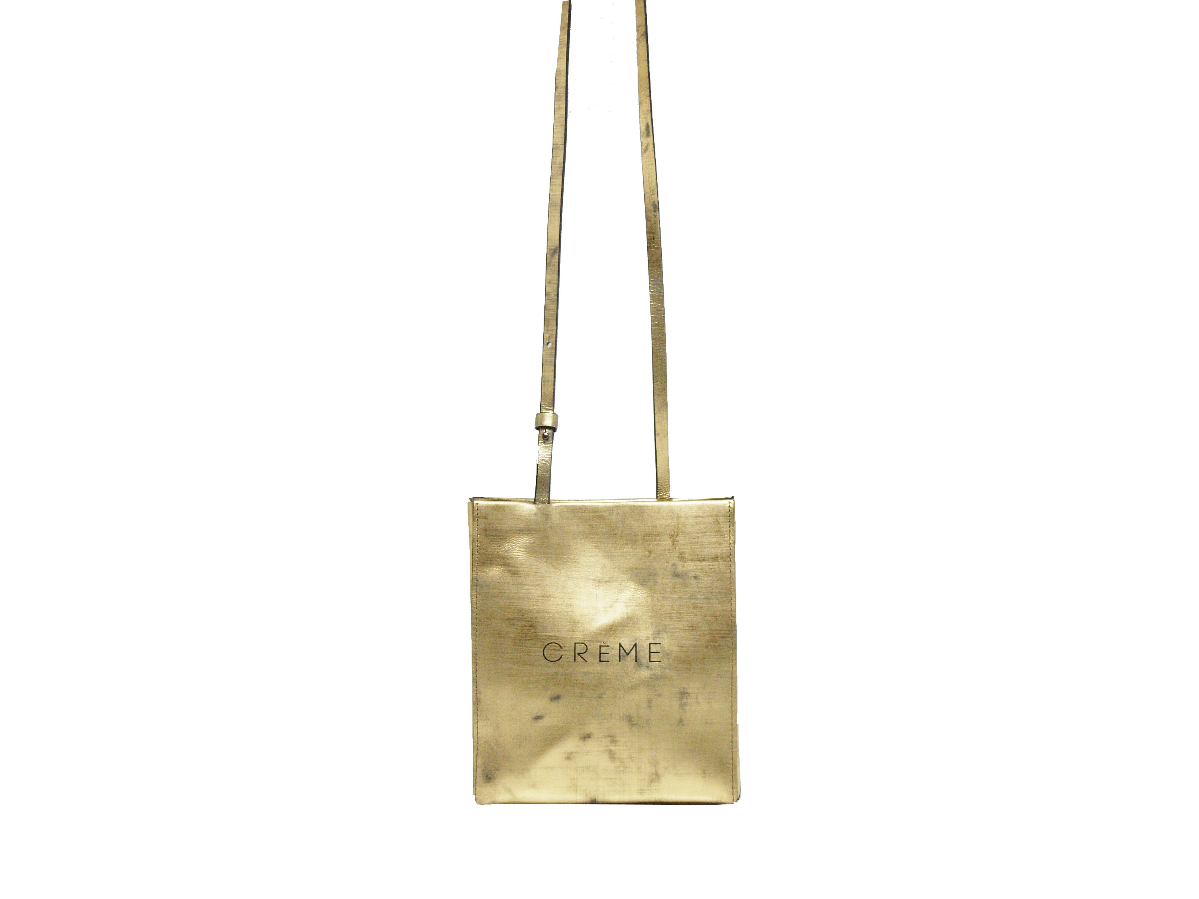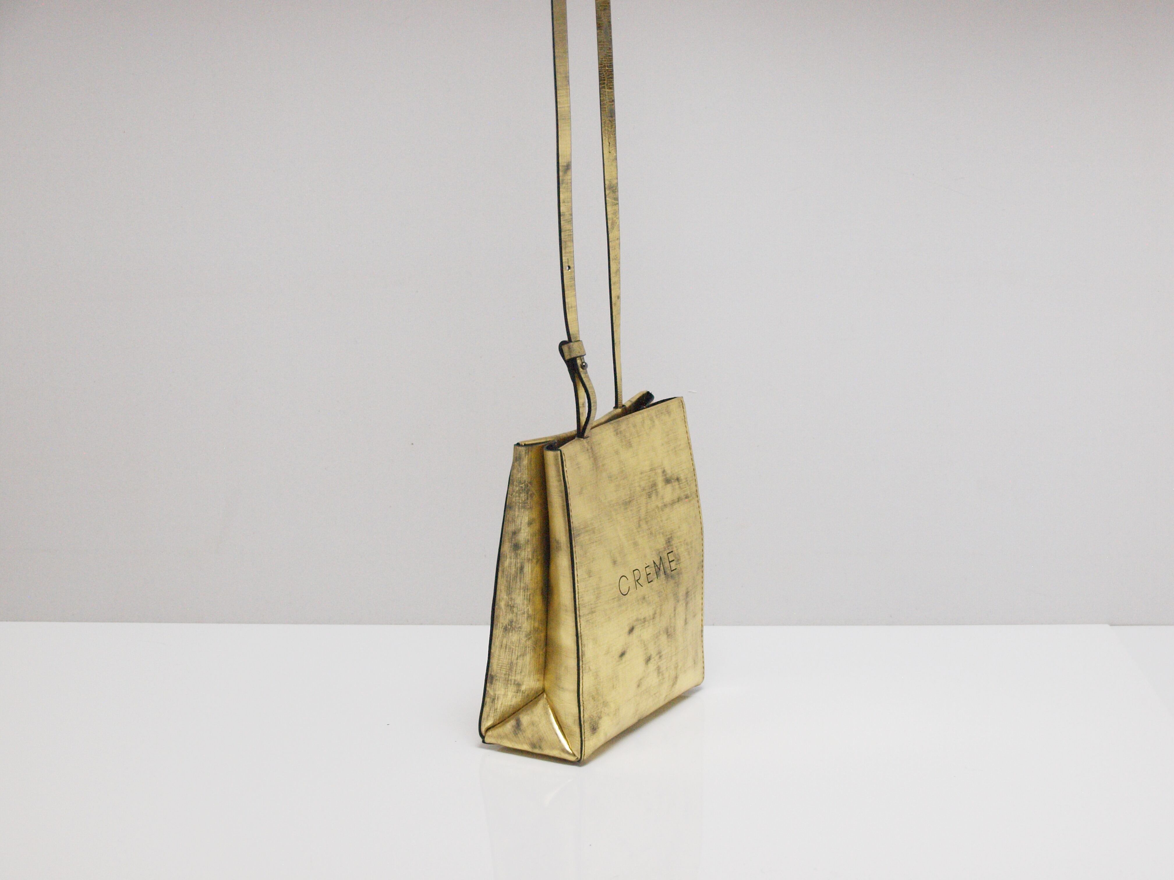 箔を貼ったキップレザー(牛革)にヴィンテージ加工を施しているため、見た目以上に軽いバッグです。