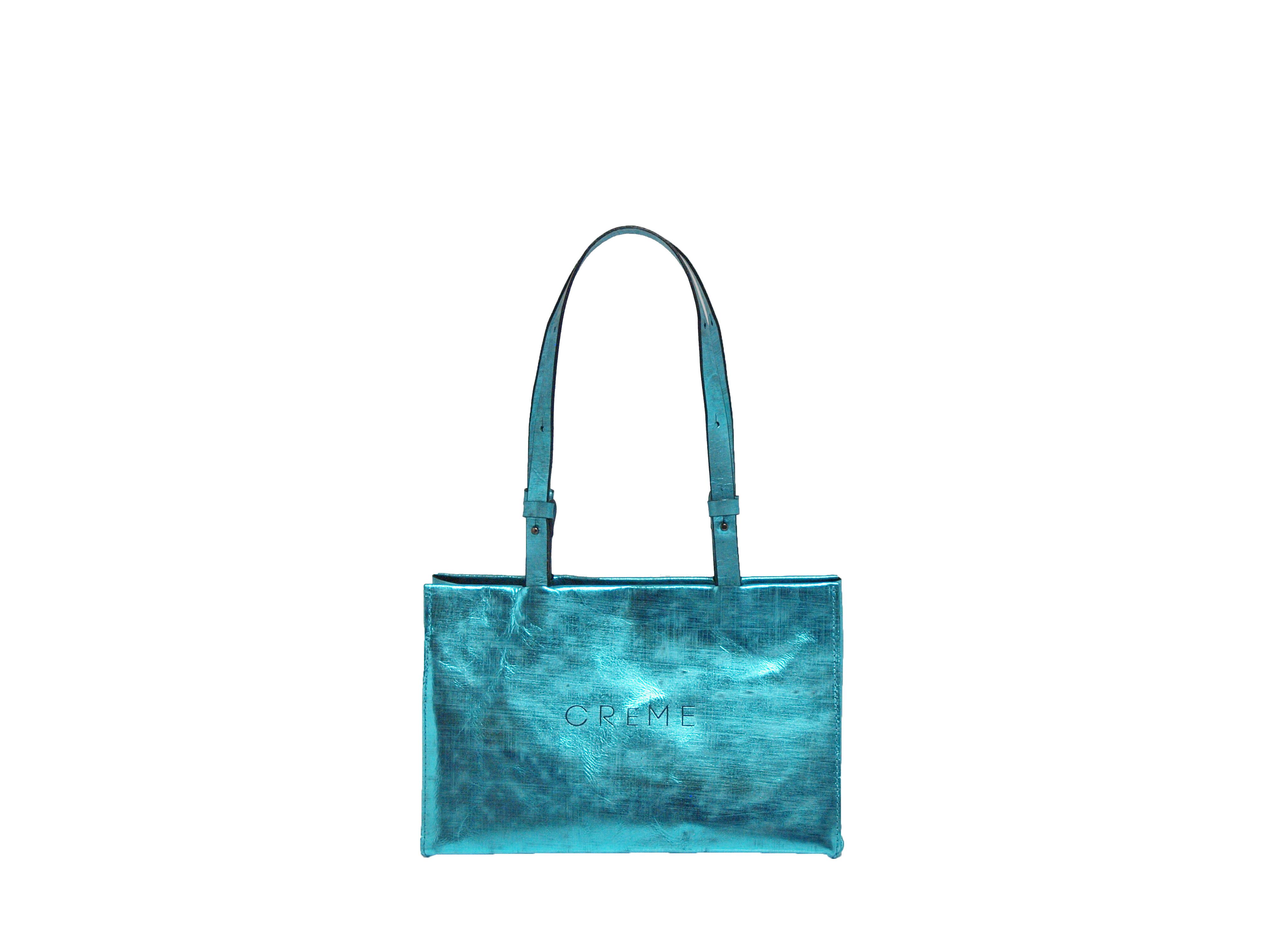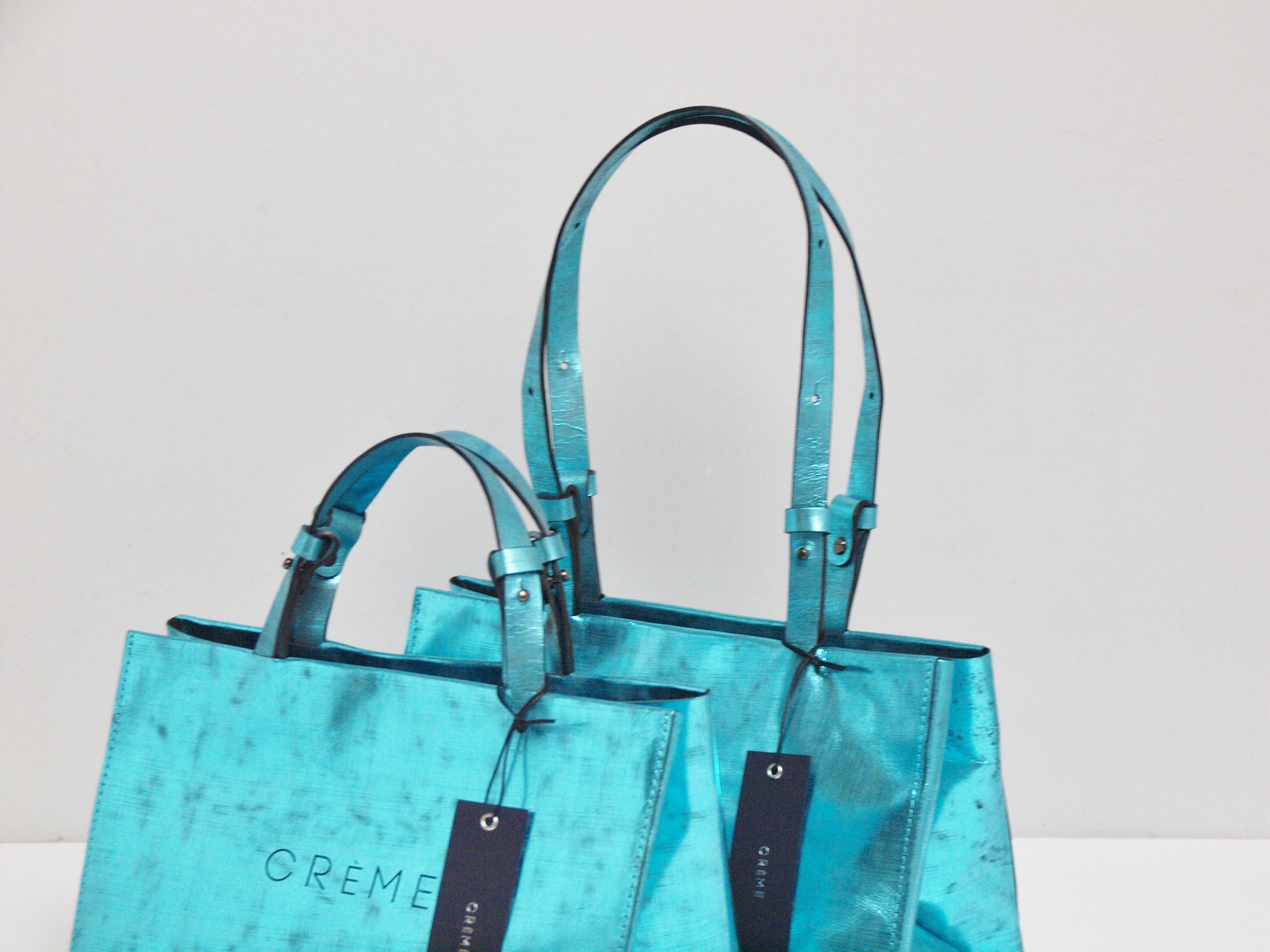 箔を貼ったキップレザー(牛革)にヴィンテージ加工(ダメージを与える為に革を削る)を施しており、見た目以上に軽いバッグです。