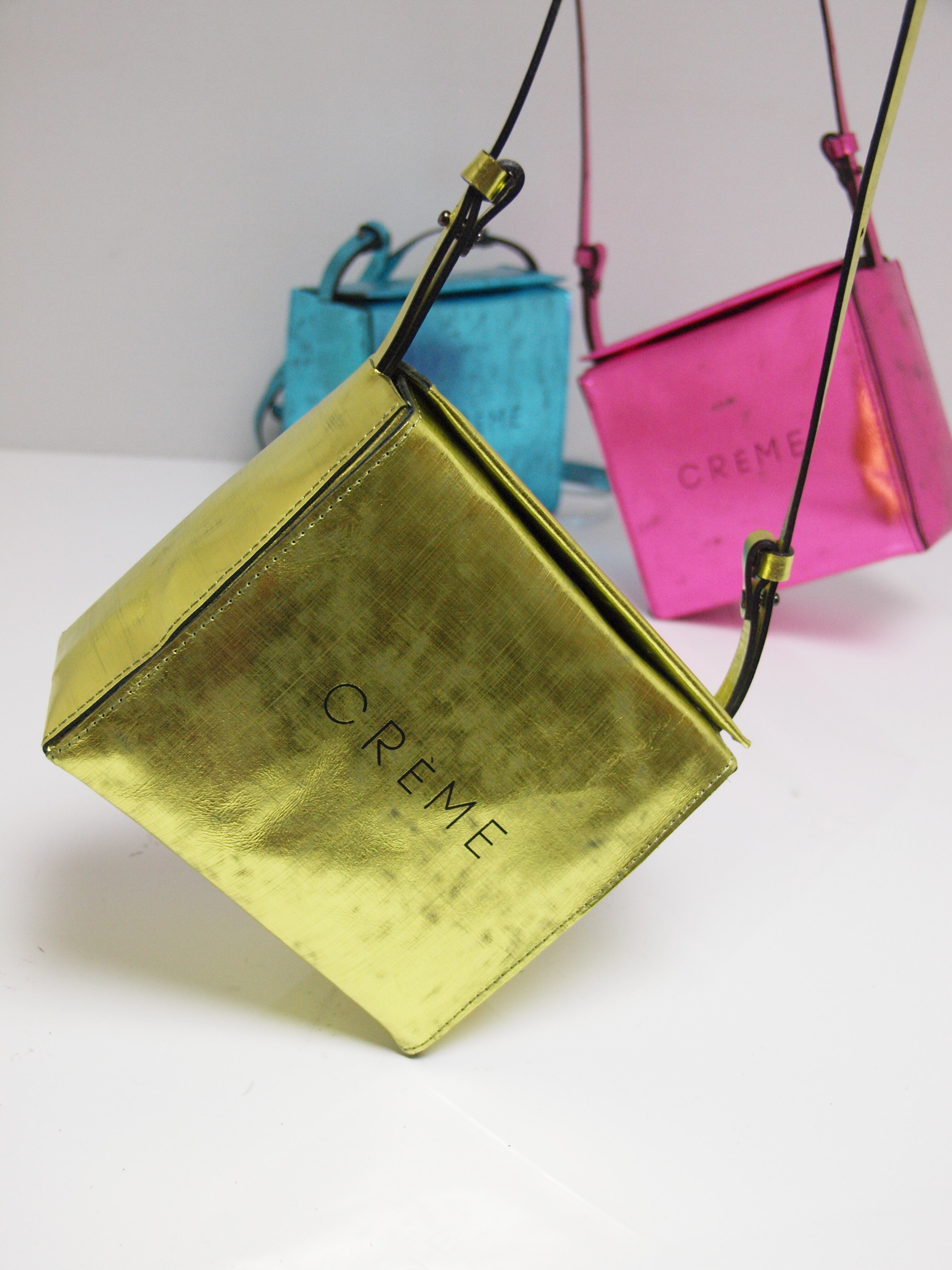 箔を貼ったキップレザー(牛革)にヴィンテージ加工(ダメージを与える為に革を削る)を施しており、見た目以上に軽いバッグです。