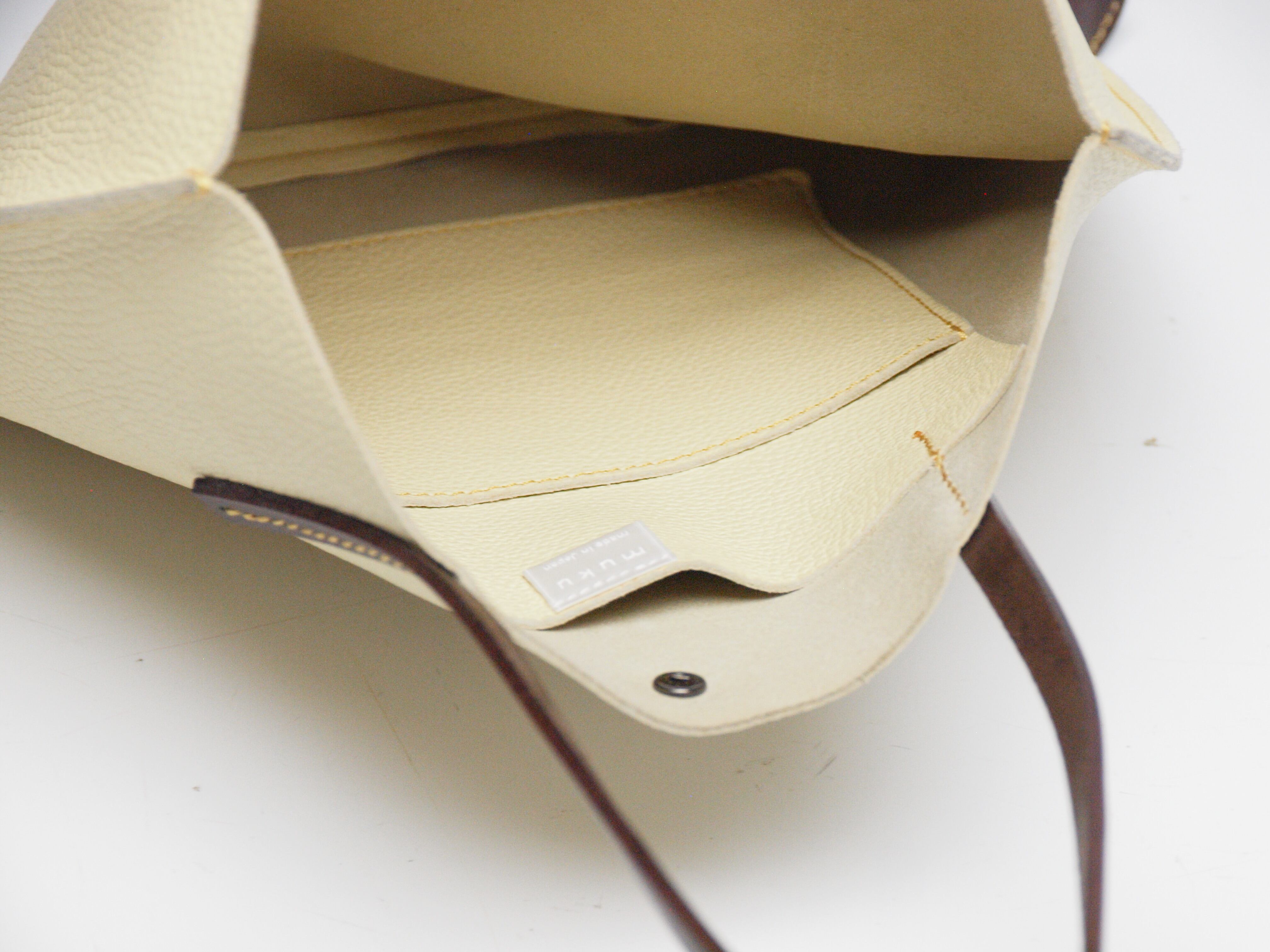 ホックをとめれば底マチが作れます。 内ポケットが1つついています。