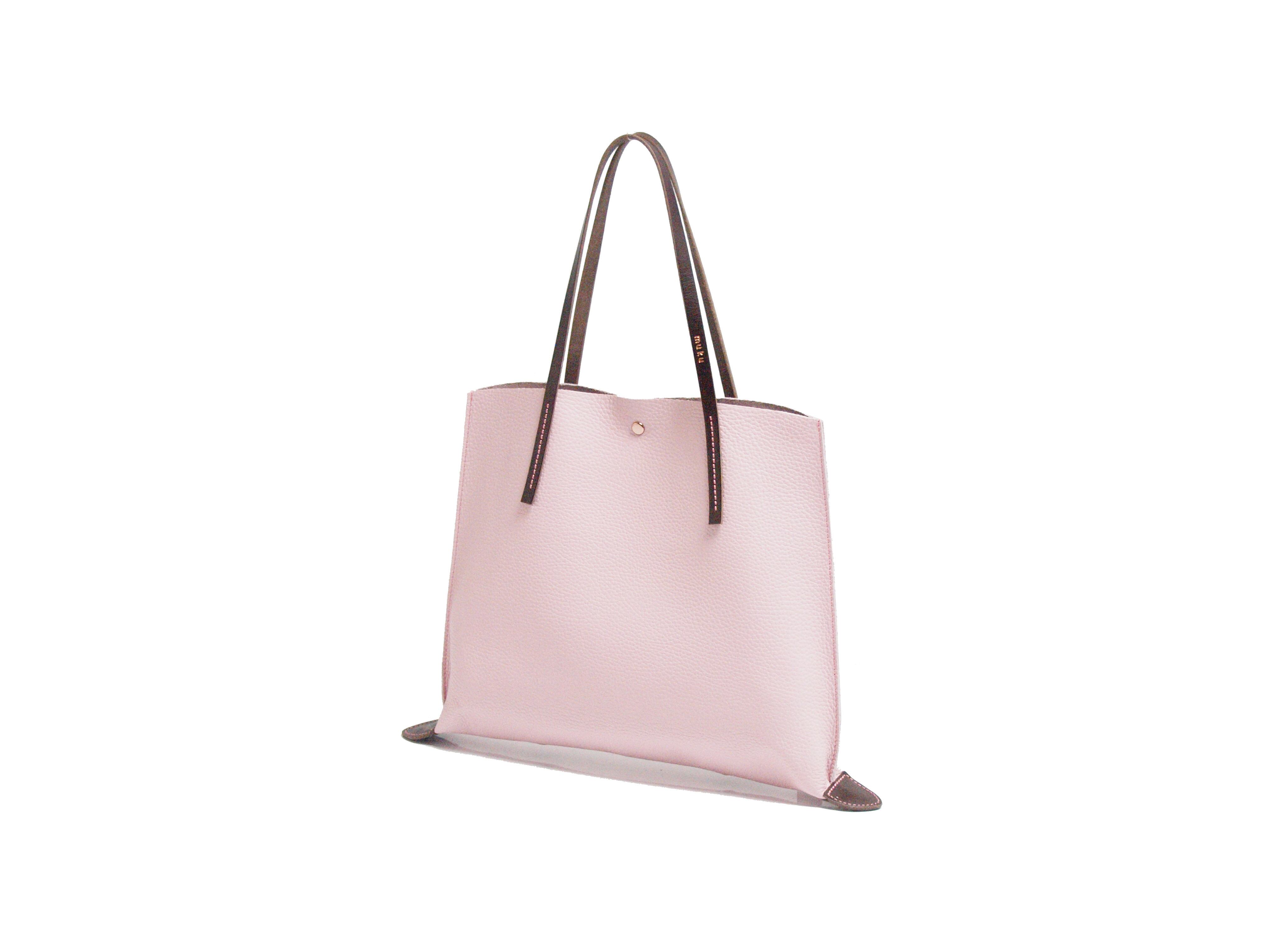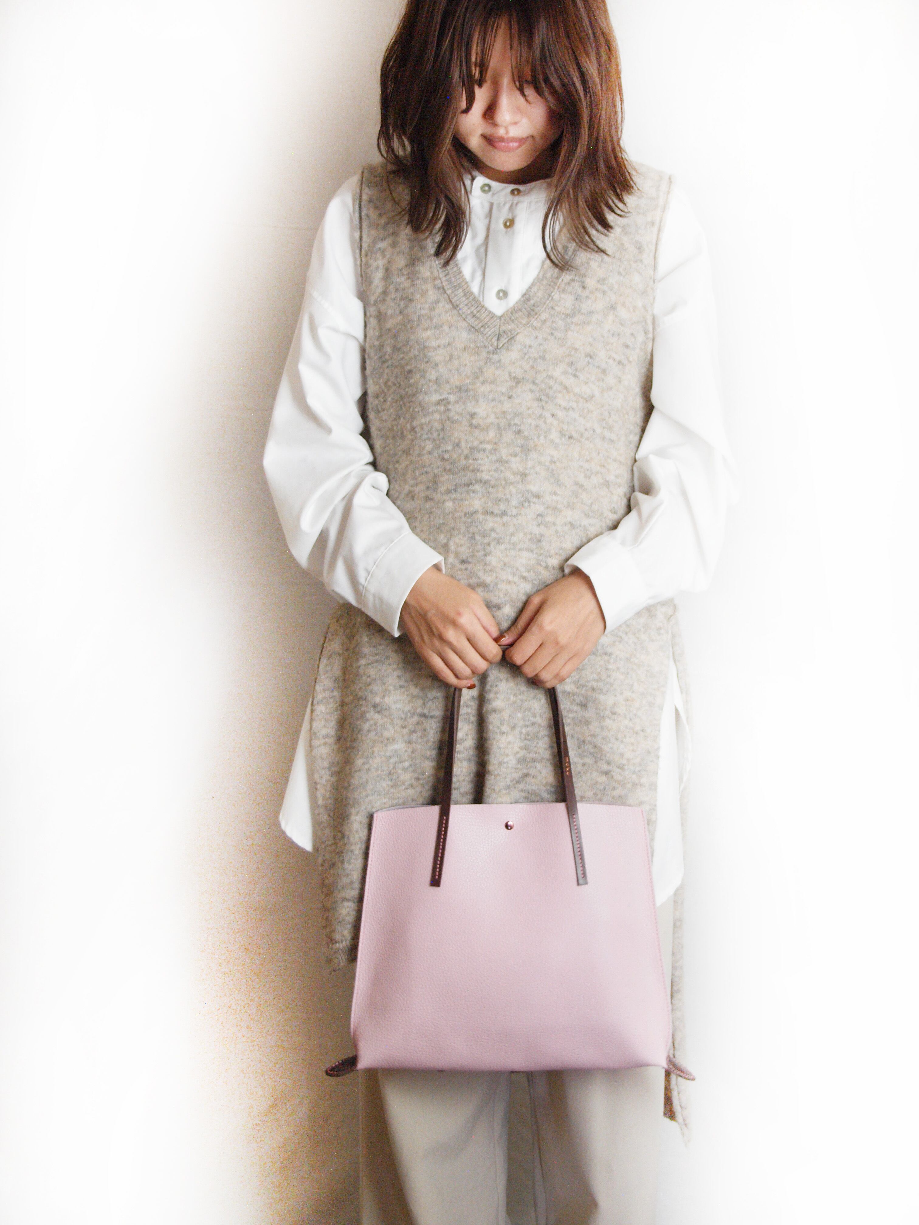 裏地処理した発色の綺麗なイタリア製シュリンクレザーです。ヌメ革ショルダーとピンクゴールド金具がポイントです。