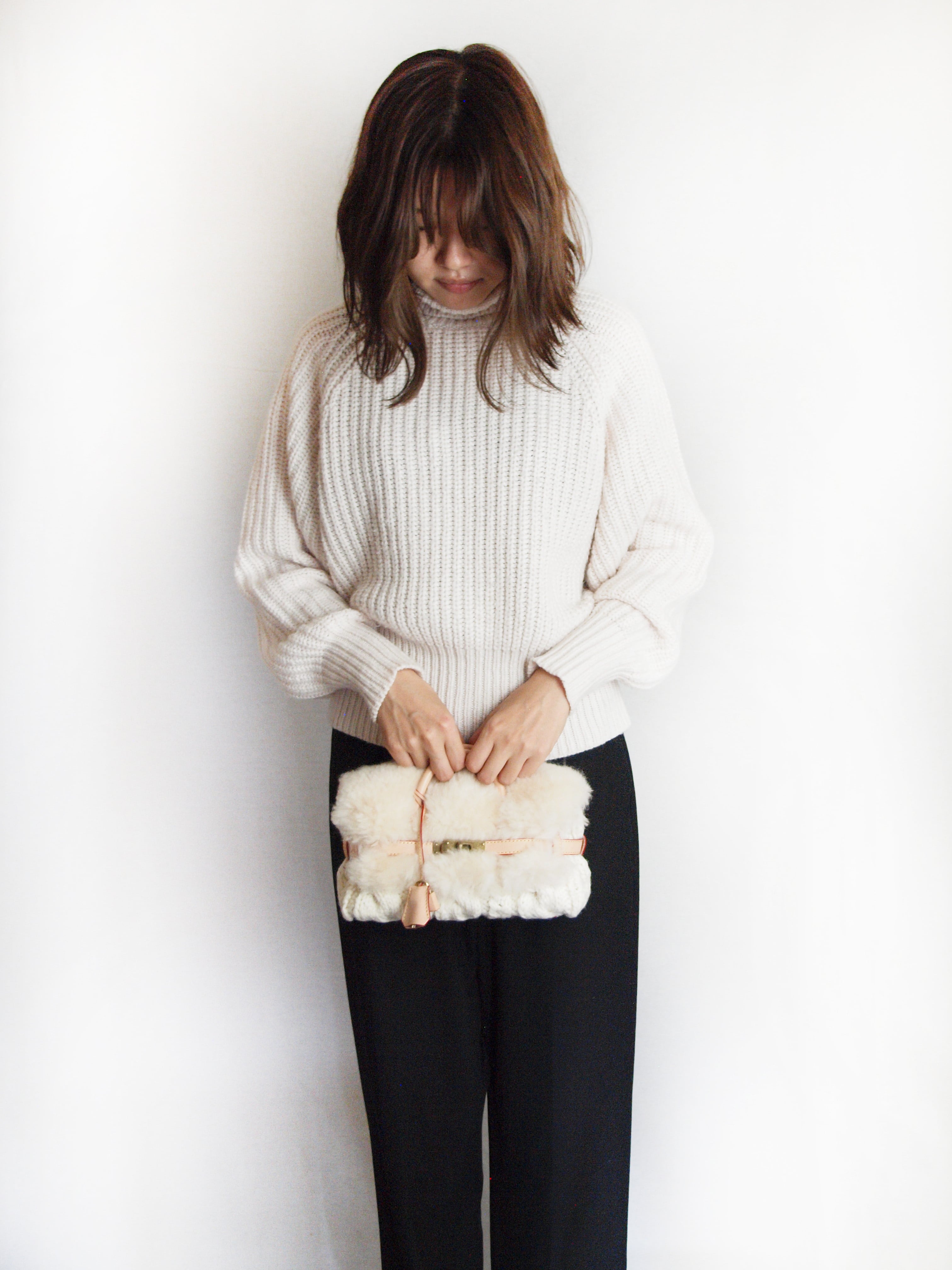 オーストラリア、ヴィクトリア州の上質なムートン(メリノラムファー)と日本の職人が編み上げたウールニットの組み合わせが特徴。