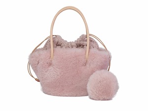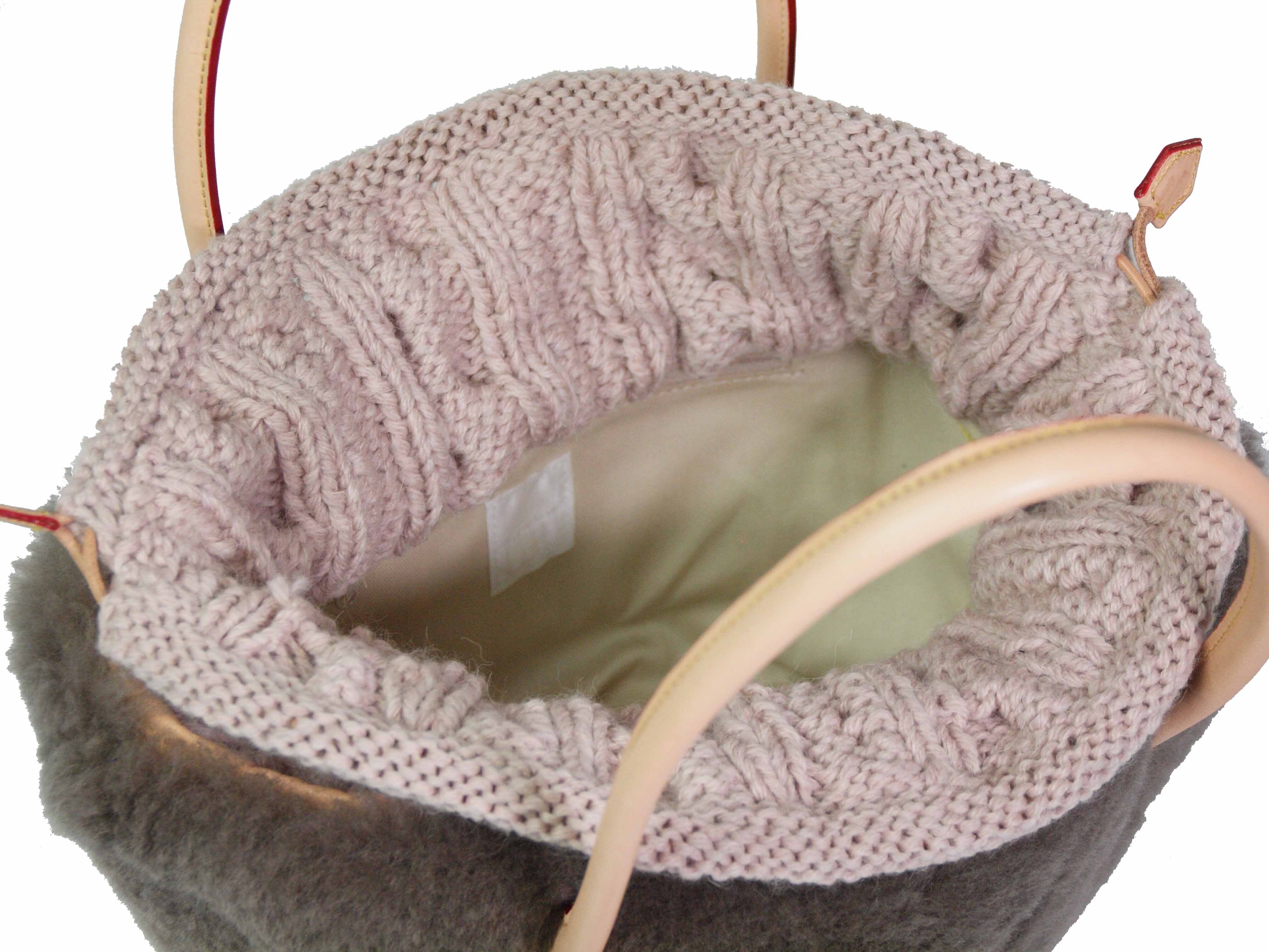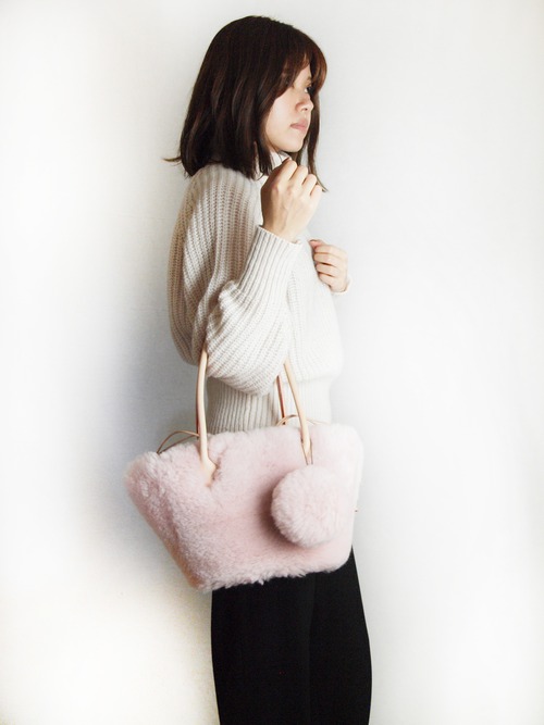長財布、500mlペットボトルなど収納力のあるトートです。小物を入れるムートンチャームが付いています。巾着ニットで開閉します。