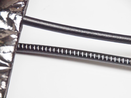 持ち手はやさしい握り心地を追求するため0,1mm単位の調整を繰り返し、特殊ミシンの縫製でレザーと芯がフィットするよう仕上げています。