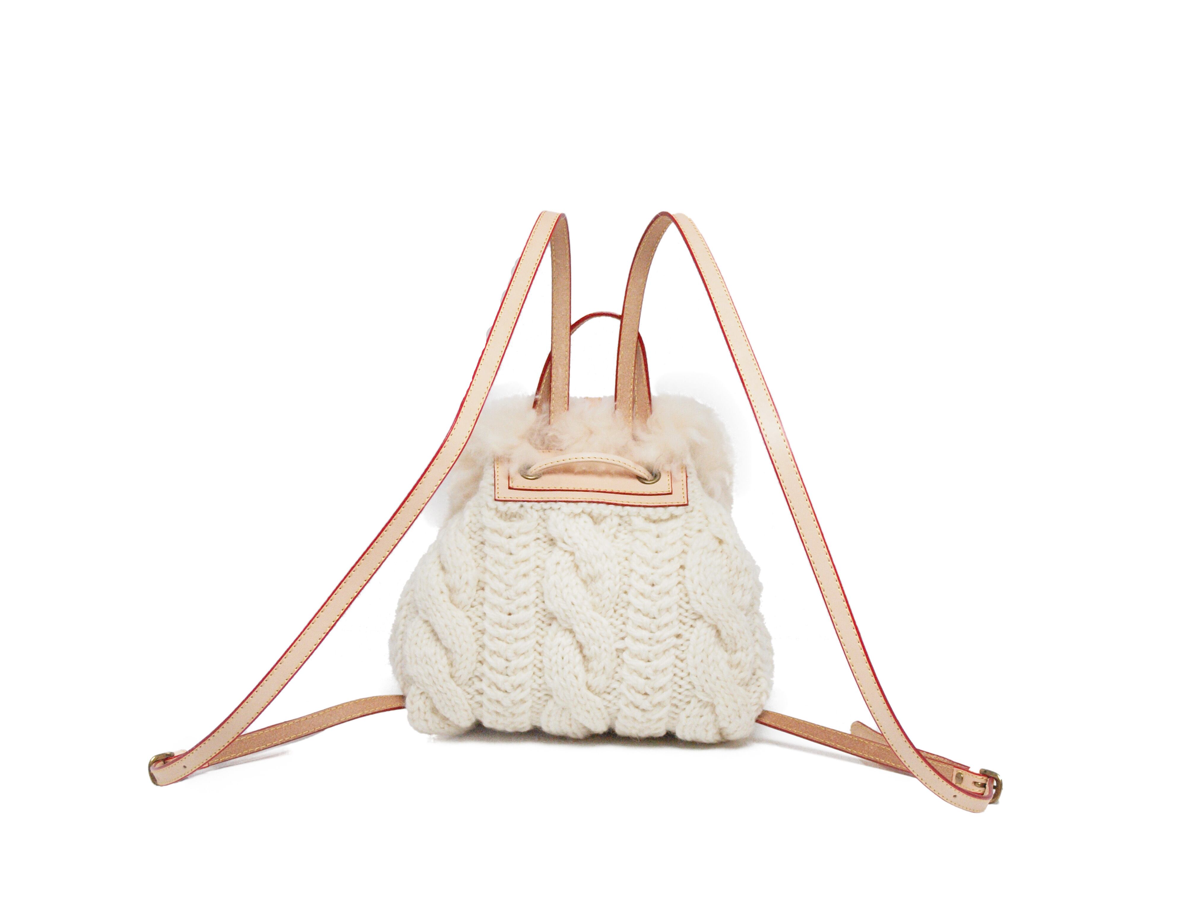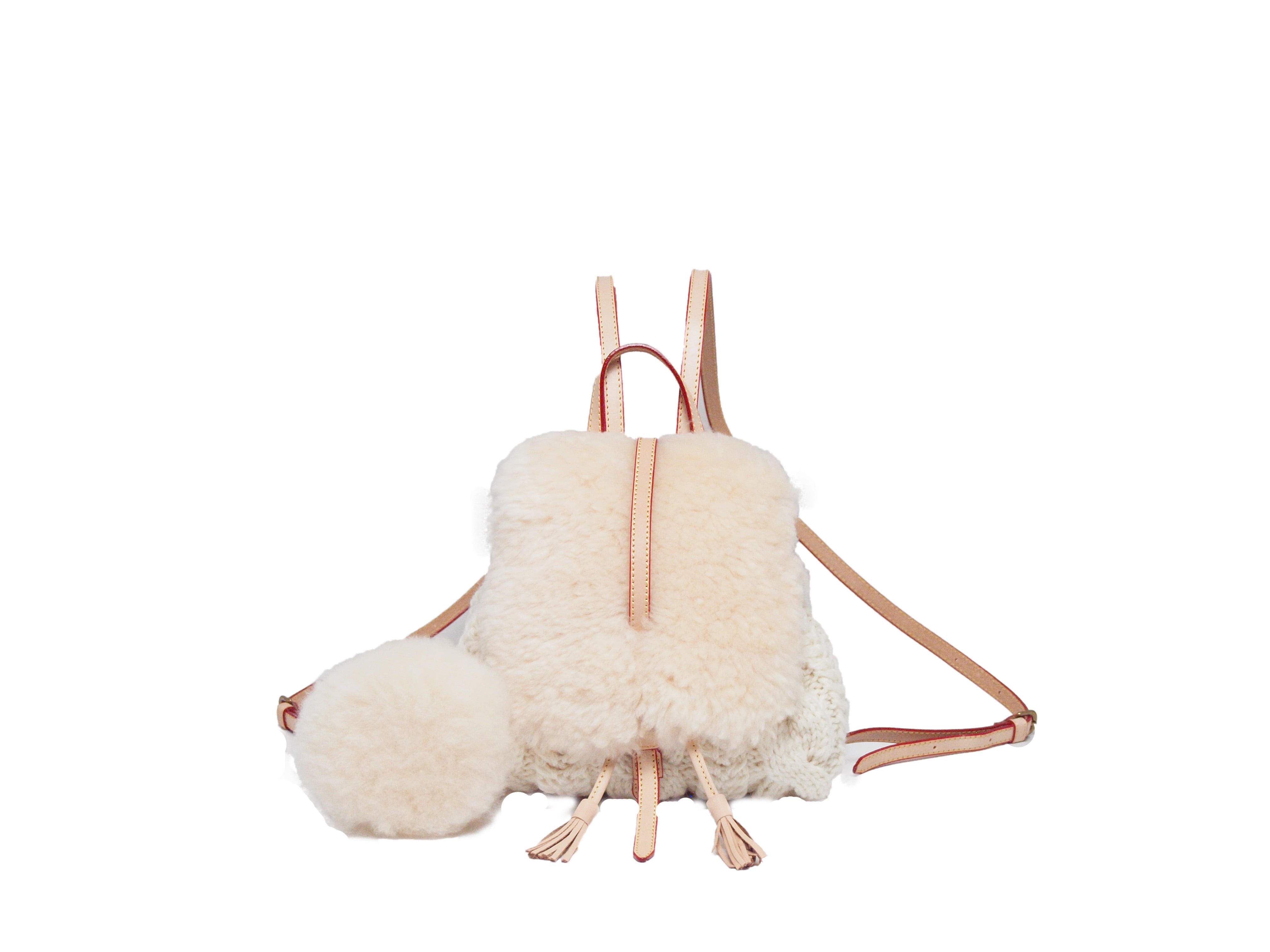 小ぶりな可愛いリュックですが500mlペットボトル、スマホや長財布などの収納ができます。小物を入れるるムートンチャームが付いています。