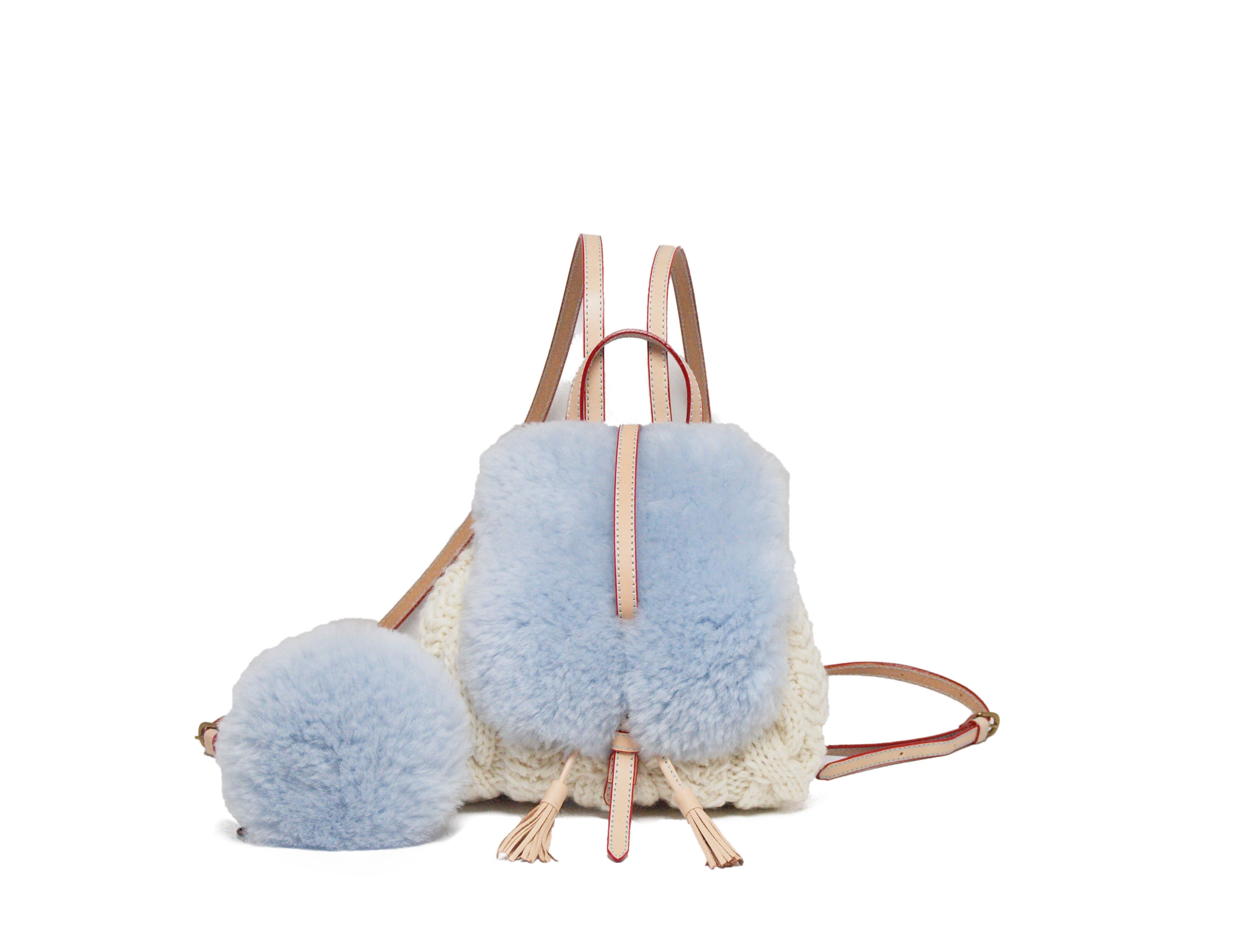 小ぶりな可愛いリュックですが500mlペットボトル、スマホや長財布などの収納ができます。小物を入れるるムートンチャームが付いています。