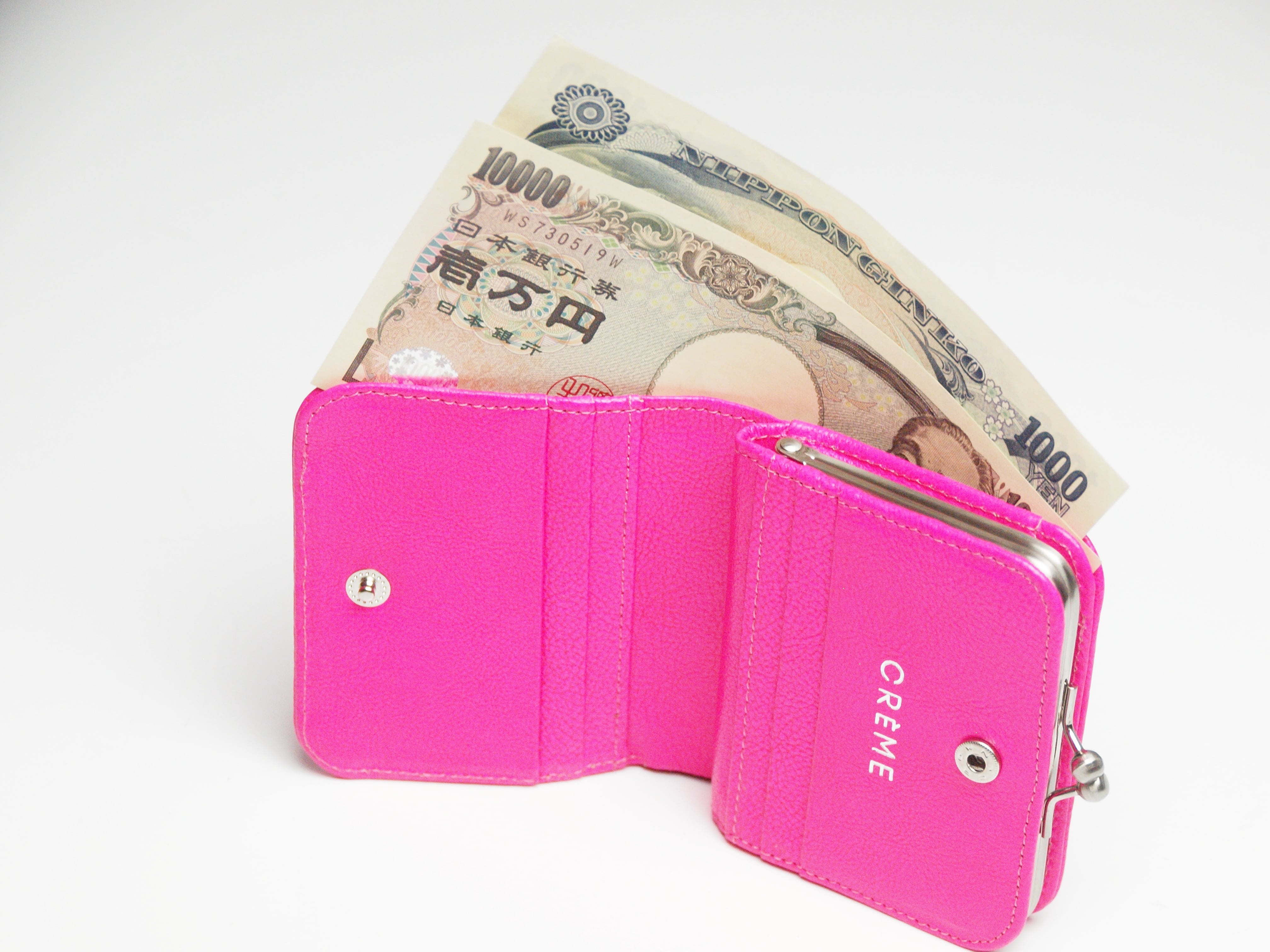 口金で大きく開き見やすいコインケース付で、カードポケット×6、札入れ、と収納力のある短財布です