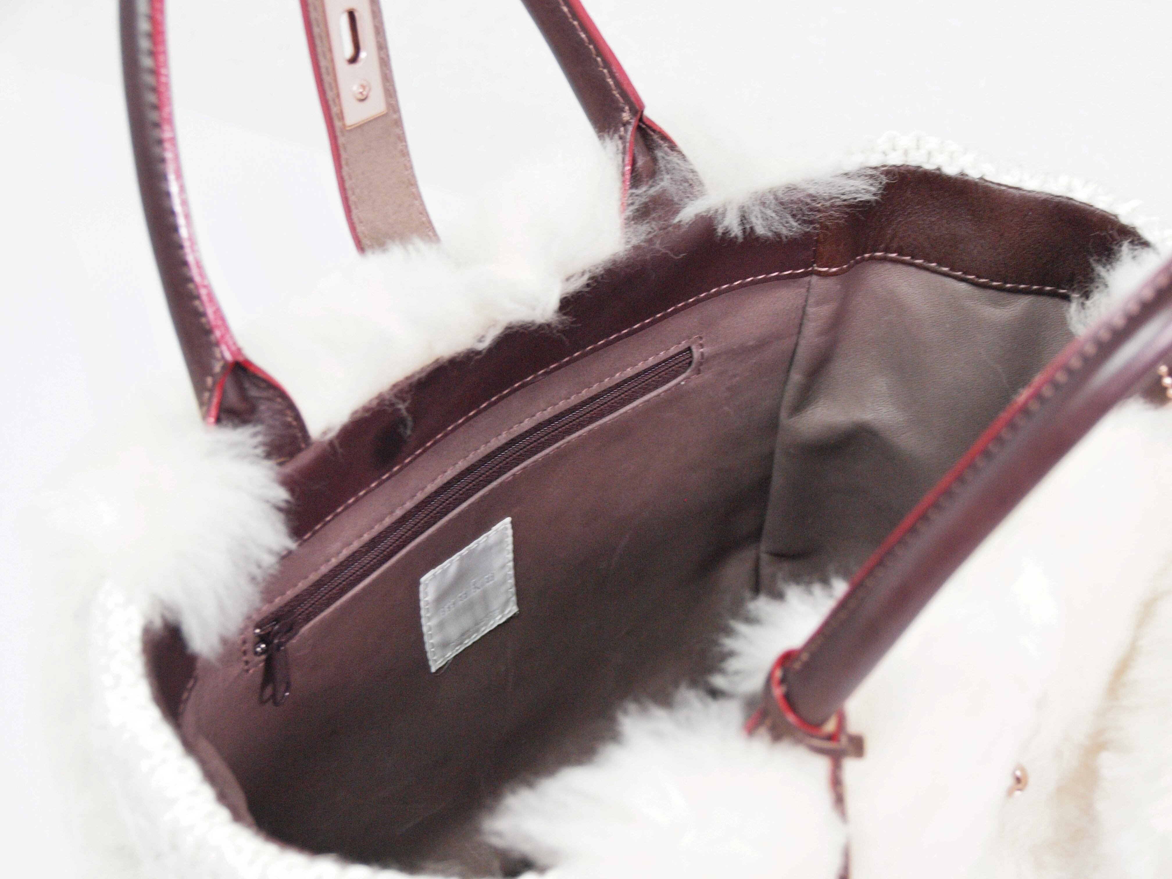 金具やファスナーはピンクゴールド、裏地には手触りの良いポニーレザーを使用し、上質でエレガントなイメージ。