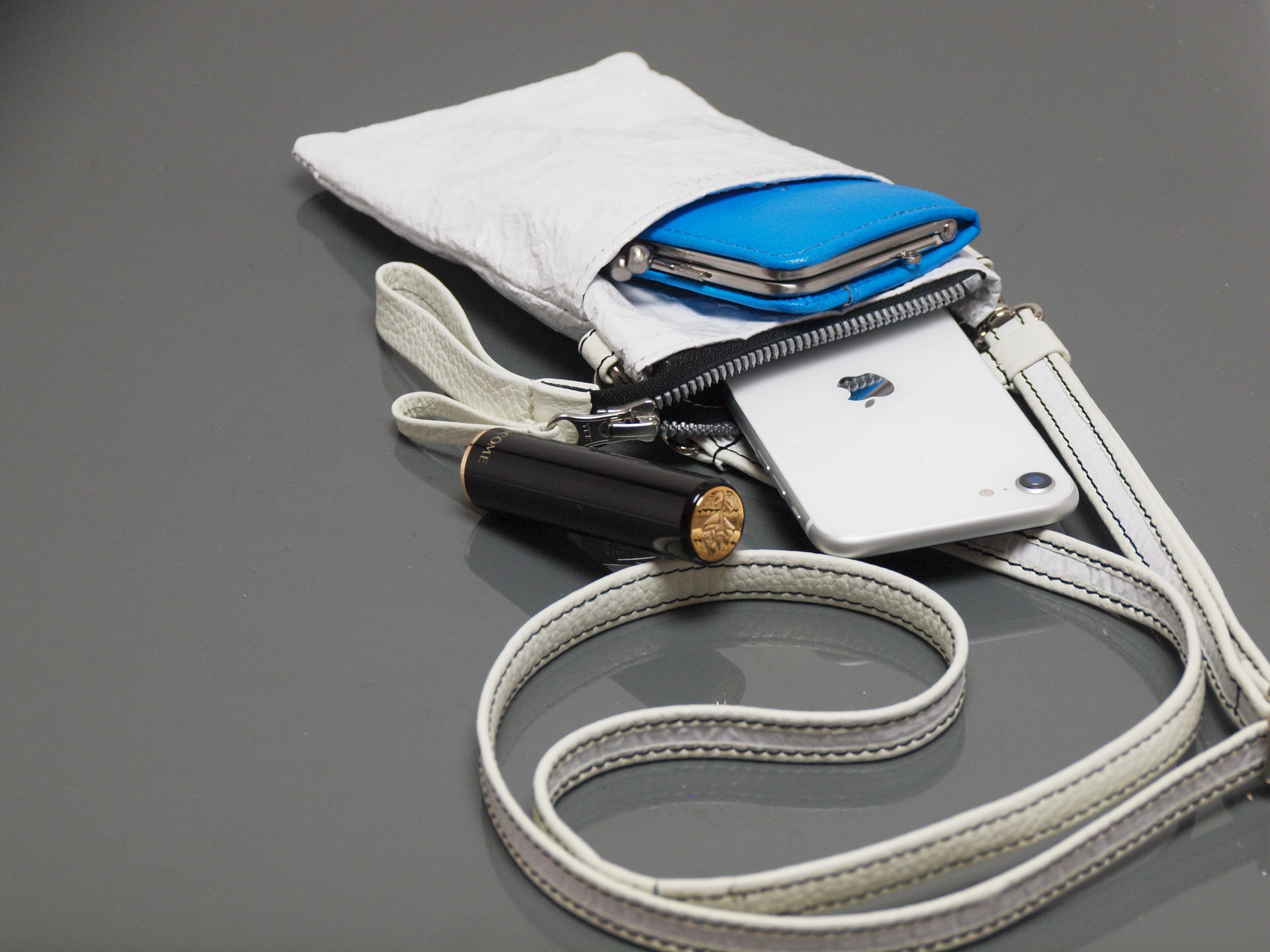 パスポートとスマホ、短財布をスマートに収納できるこのミニポシェットは海外旅行に最適です。