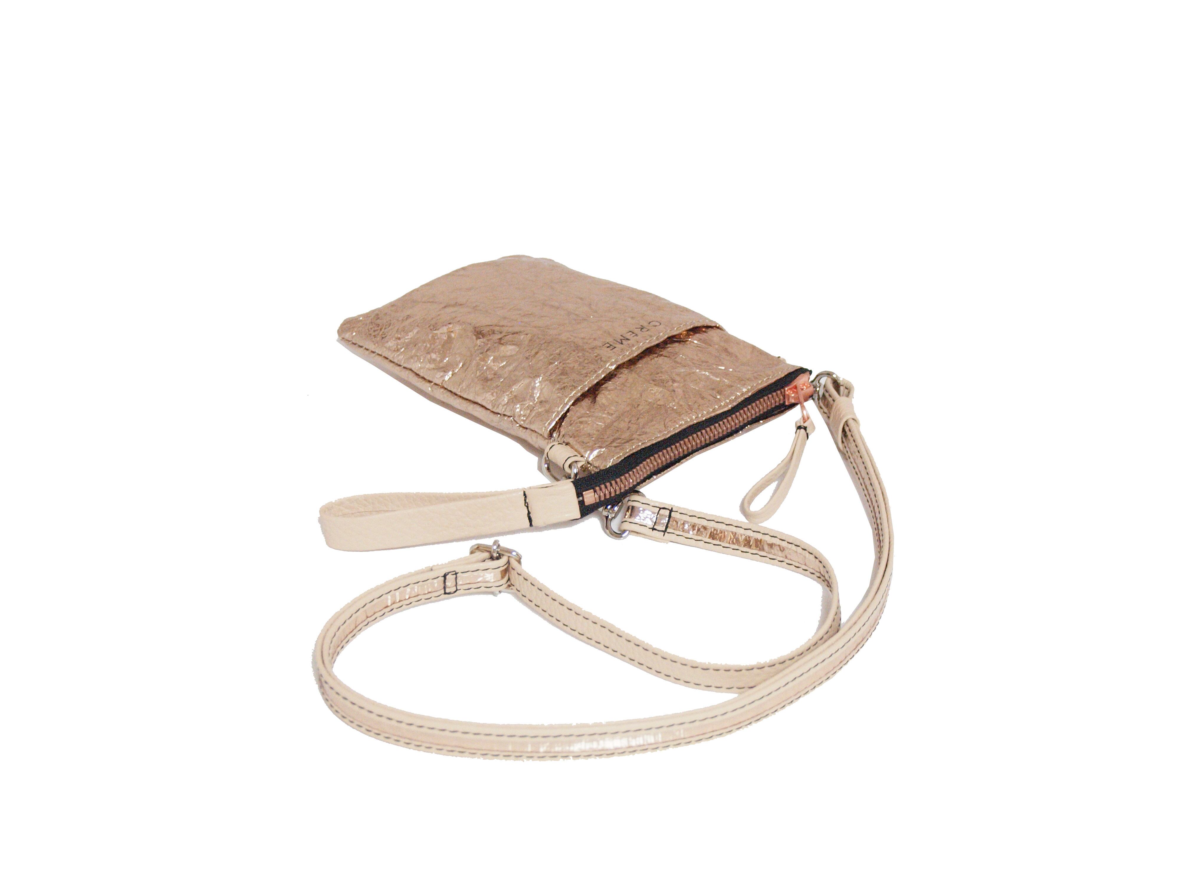パスポートとスマホ、短財布をスマートに収納できるこのミニポシェットは海外旅行に最適です。