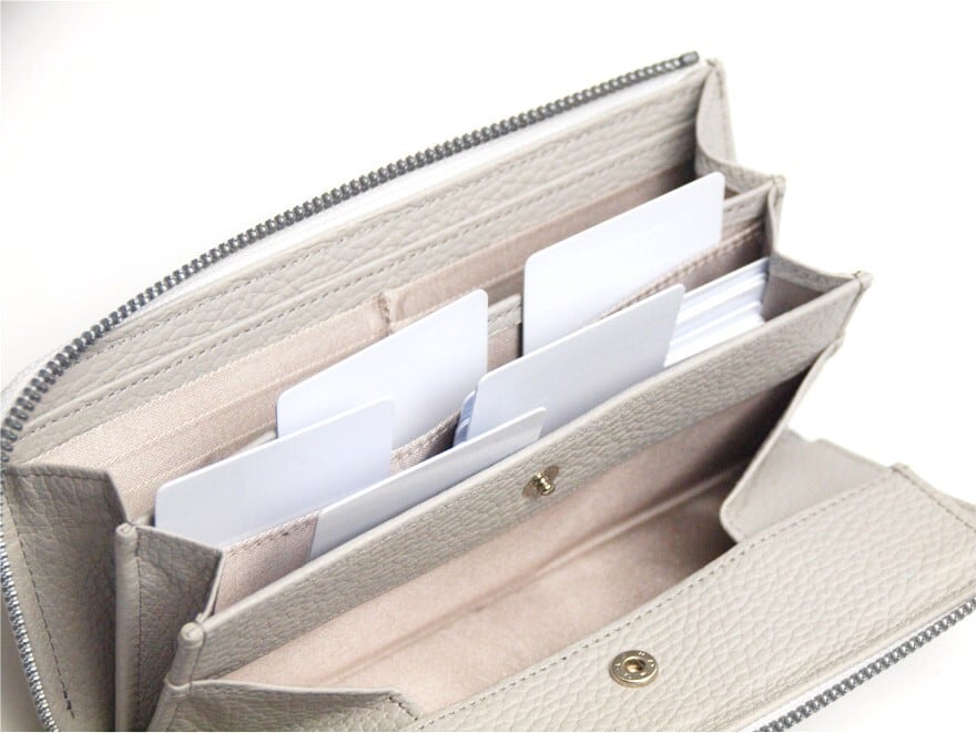お札入れと大容量の小銭入れ、カードポケット×内12(カードを縦で入れることも可)です。