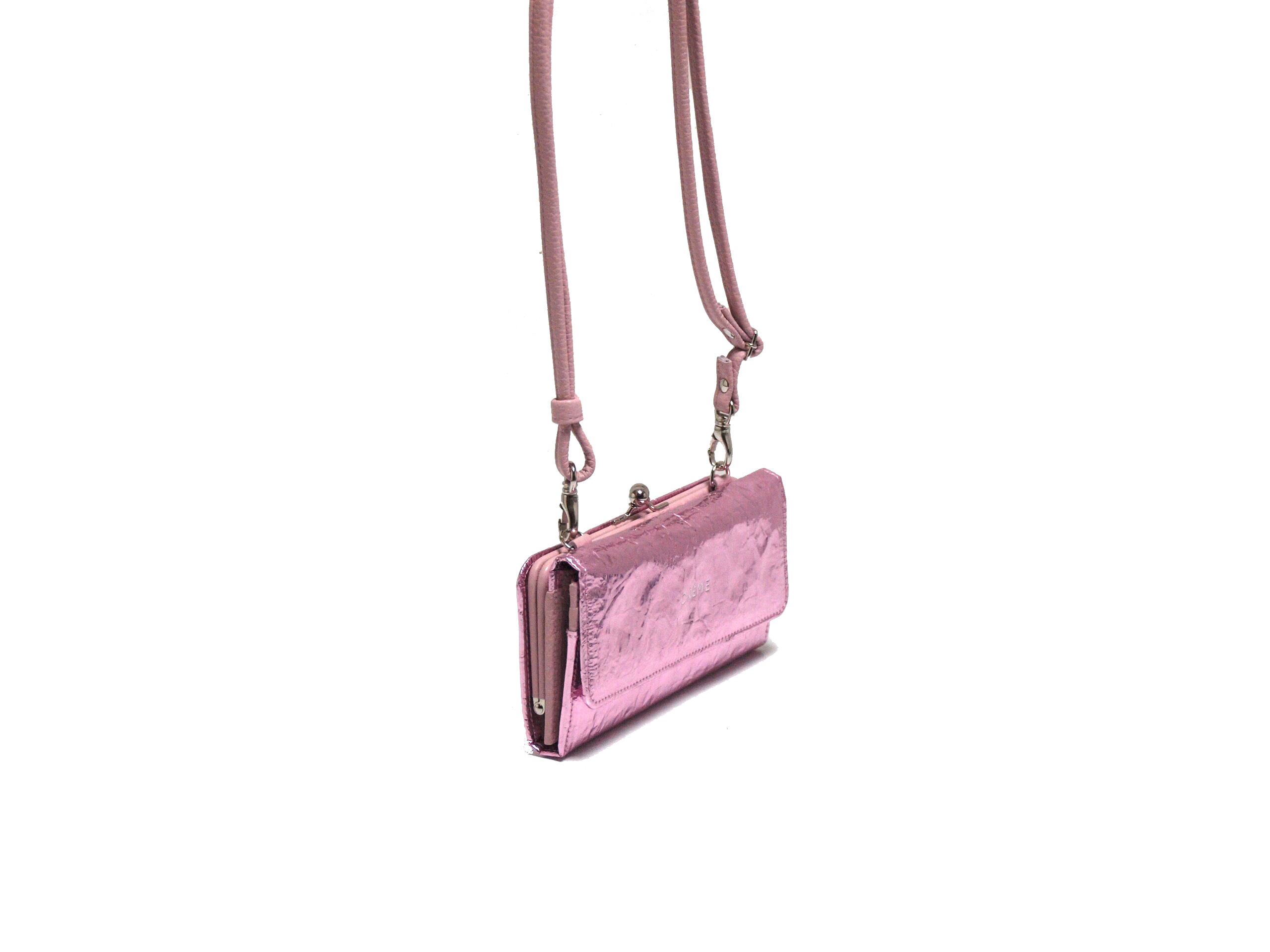 容量たっぷりの財布ポシェット(取り外し可能なショルダー付)、内革はイタリア製シュリンクレザーです。