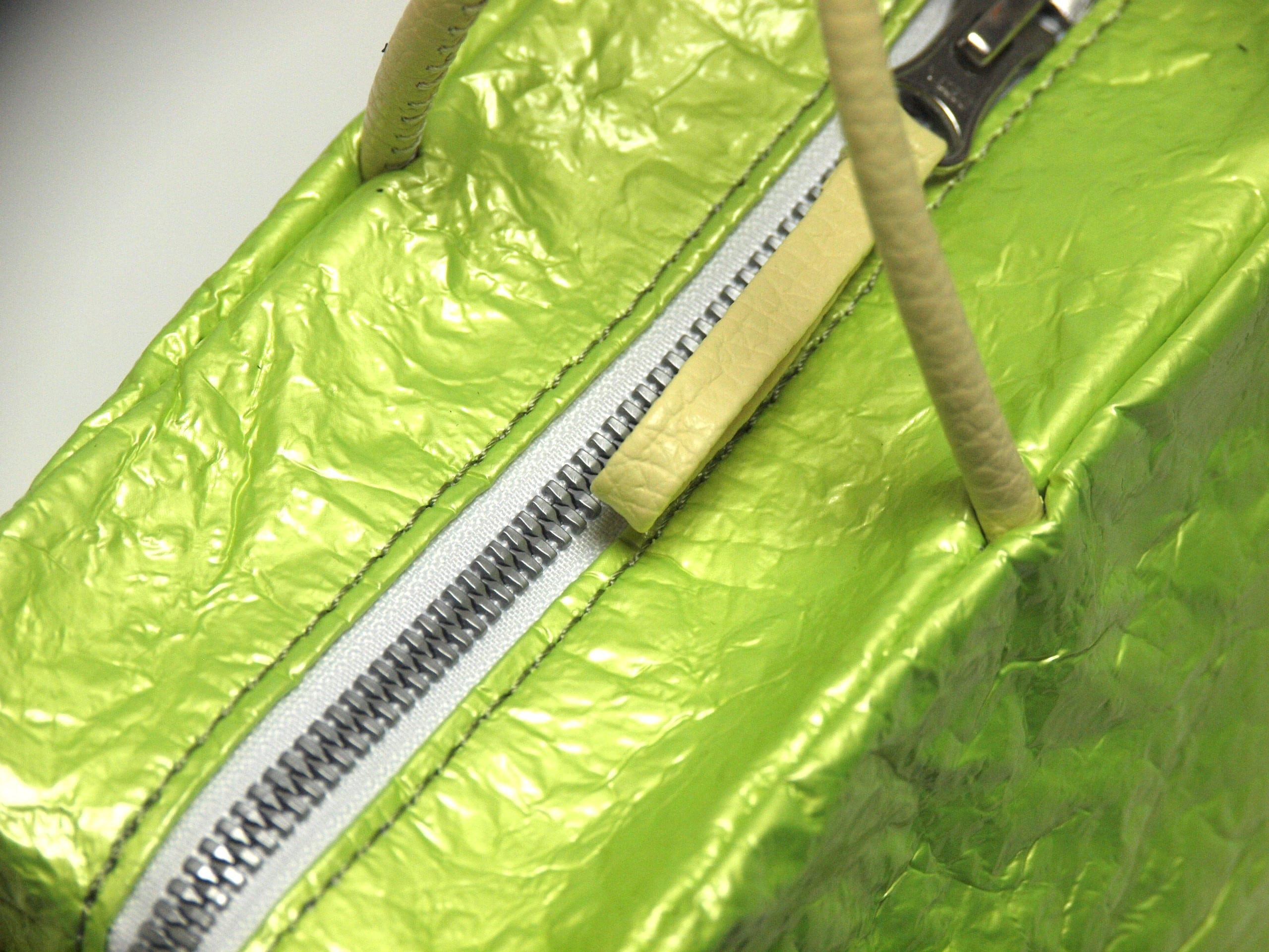 大手ハイブランドが取引するイタリアの素材メーカーが開発した素材(アルミにポリエステルコーティング)を使用。