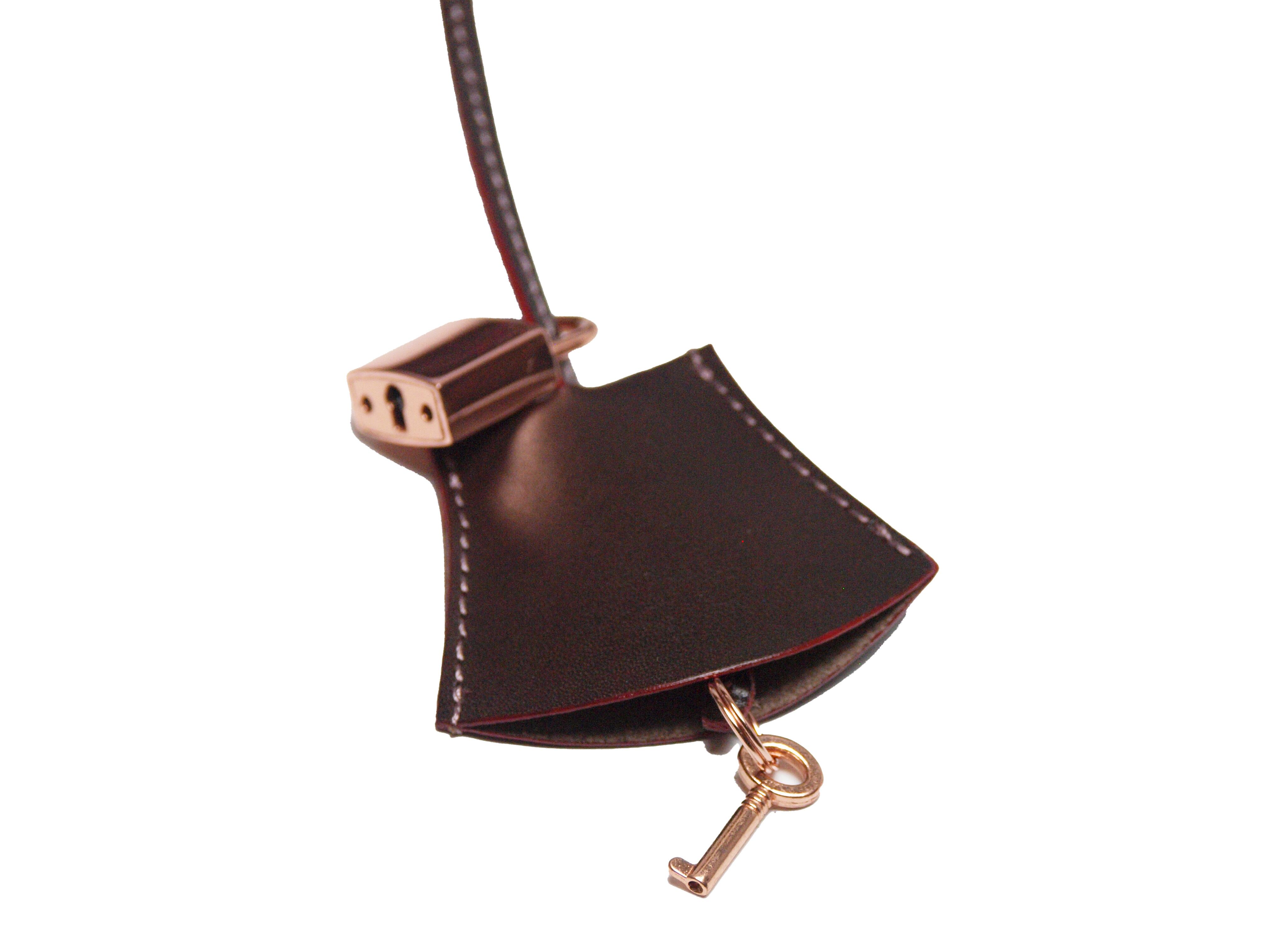 飾りにもなる鍵でひねり金物を留めることができます。小物を入れるムートンチャームが付いています。