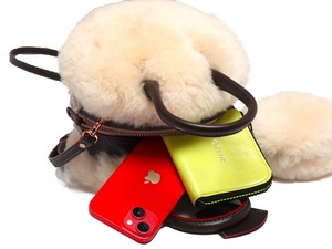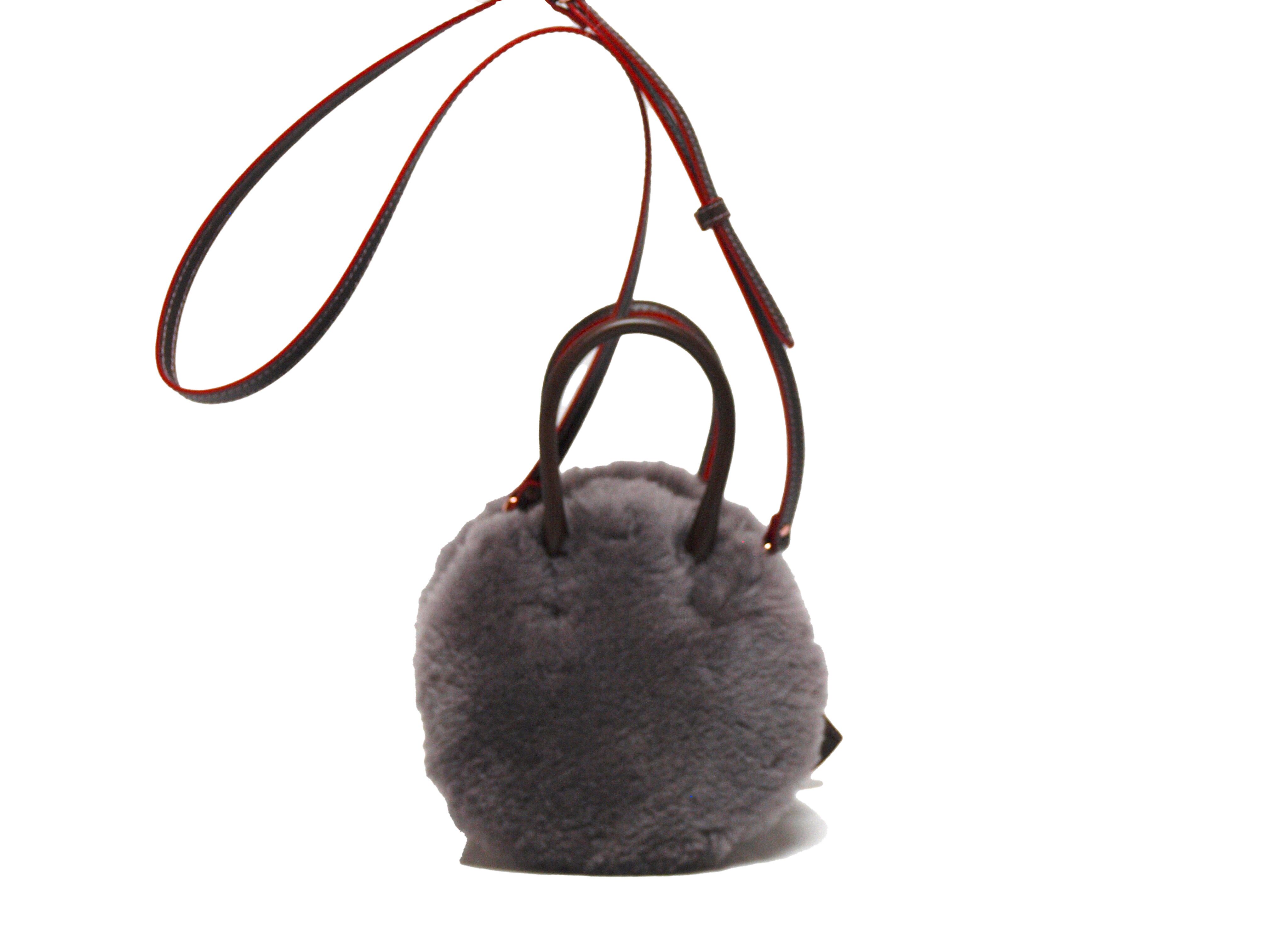 こちらは底マチが広いまん丸型の可愛い2WAYバッグで、飾りにもなる鍵でひねり金物を留めることができます。